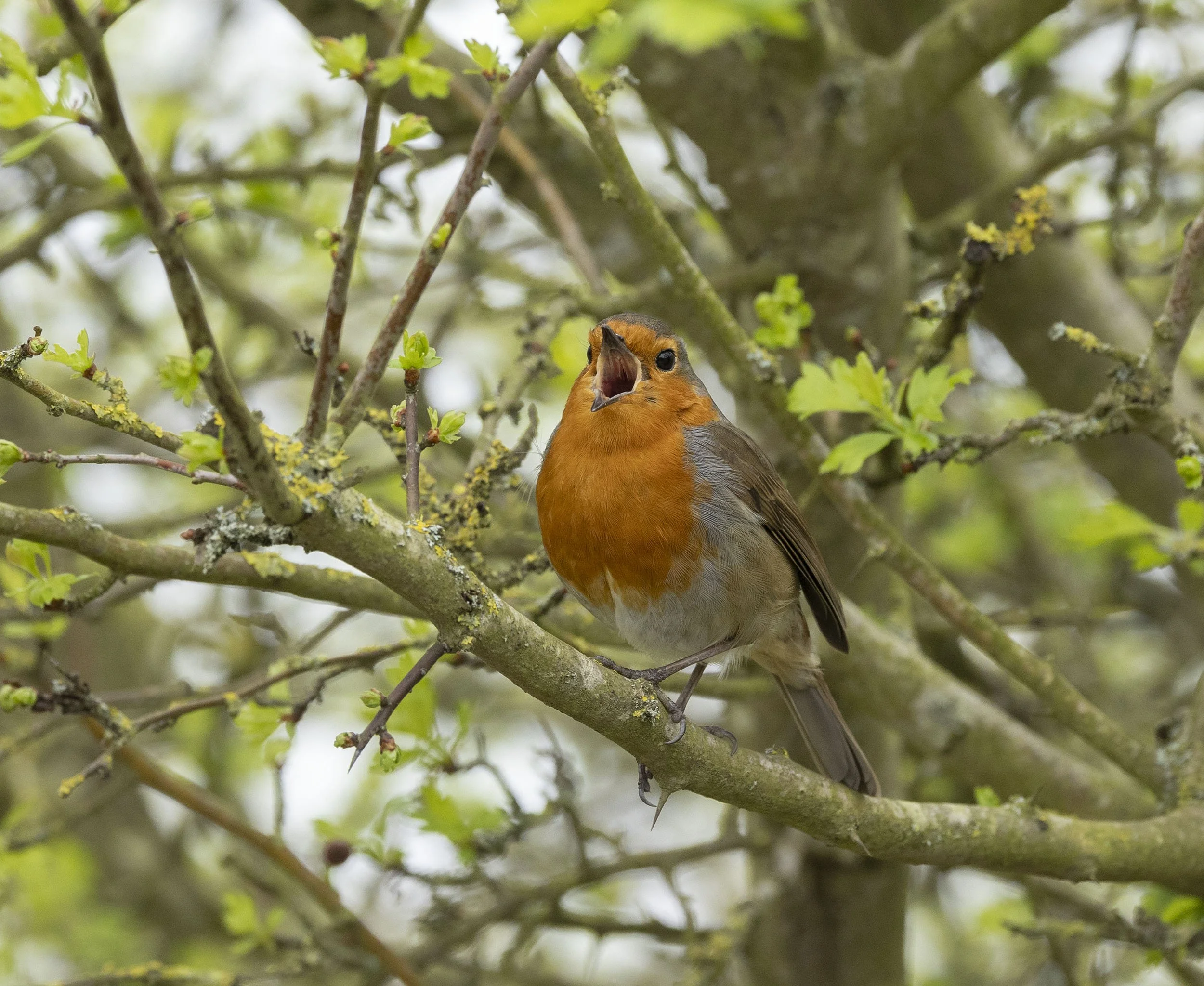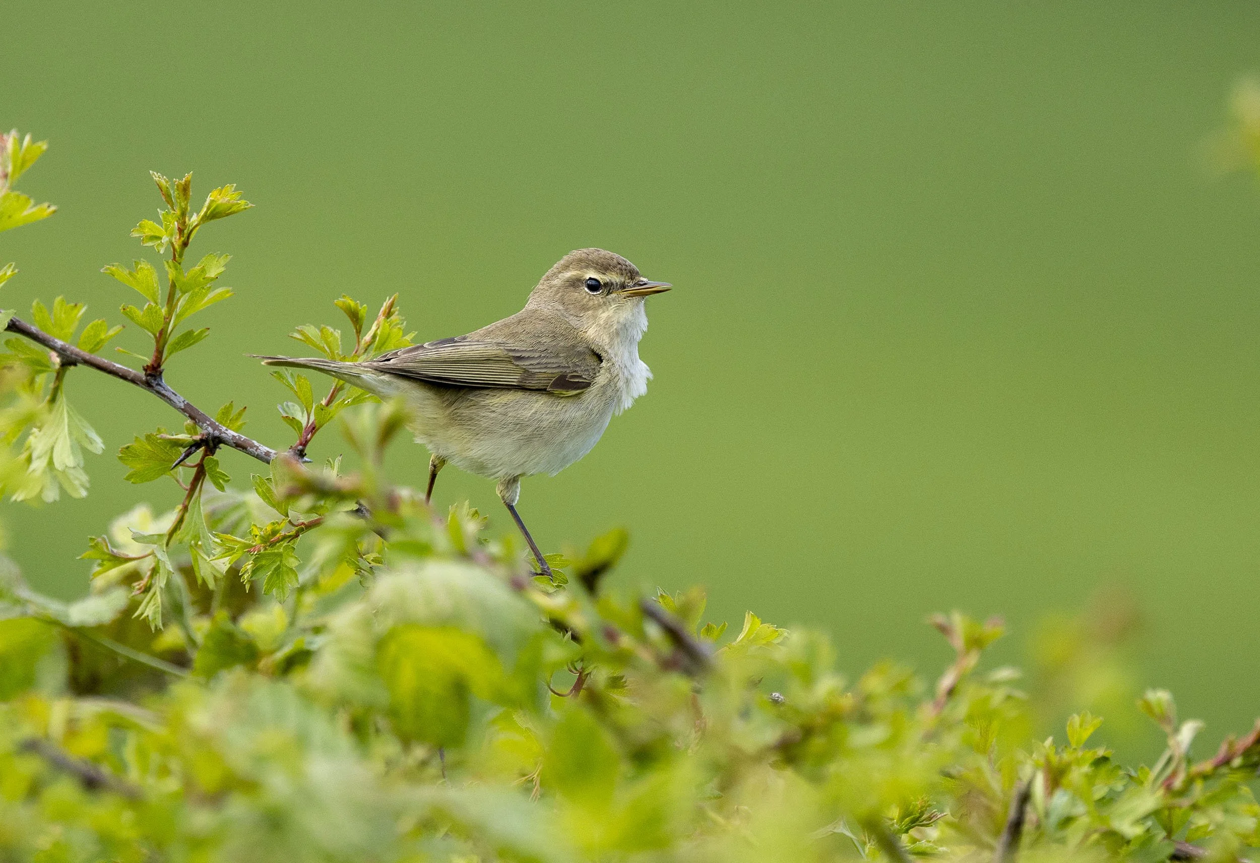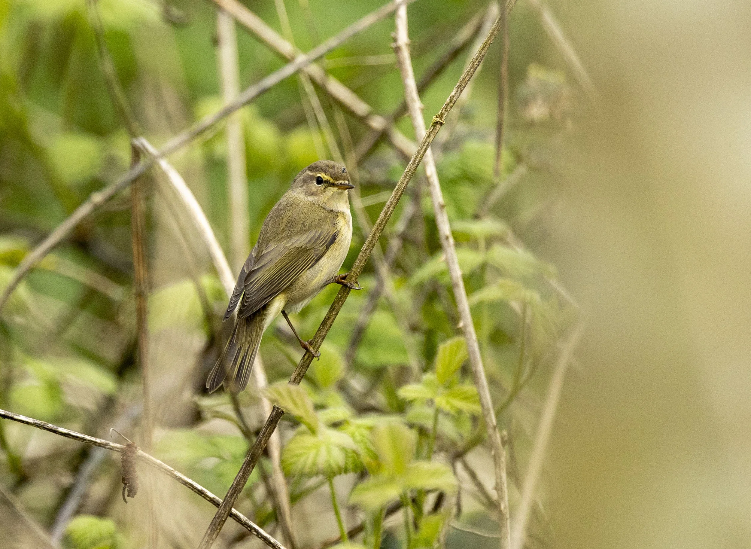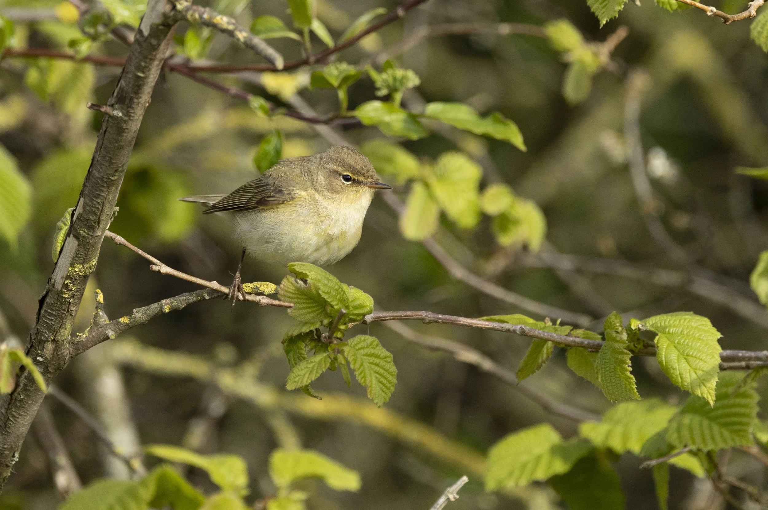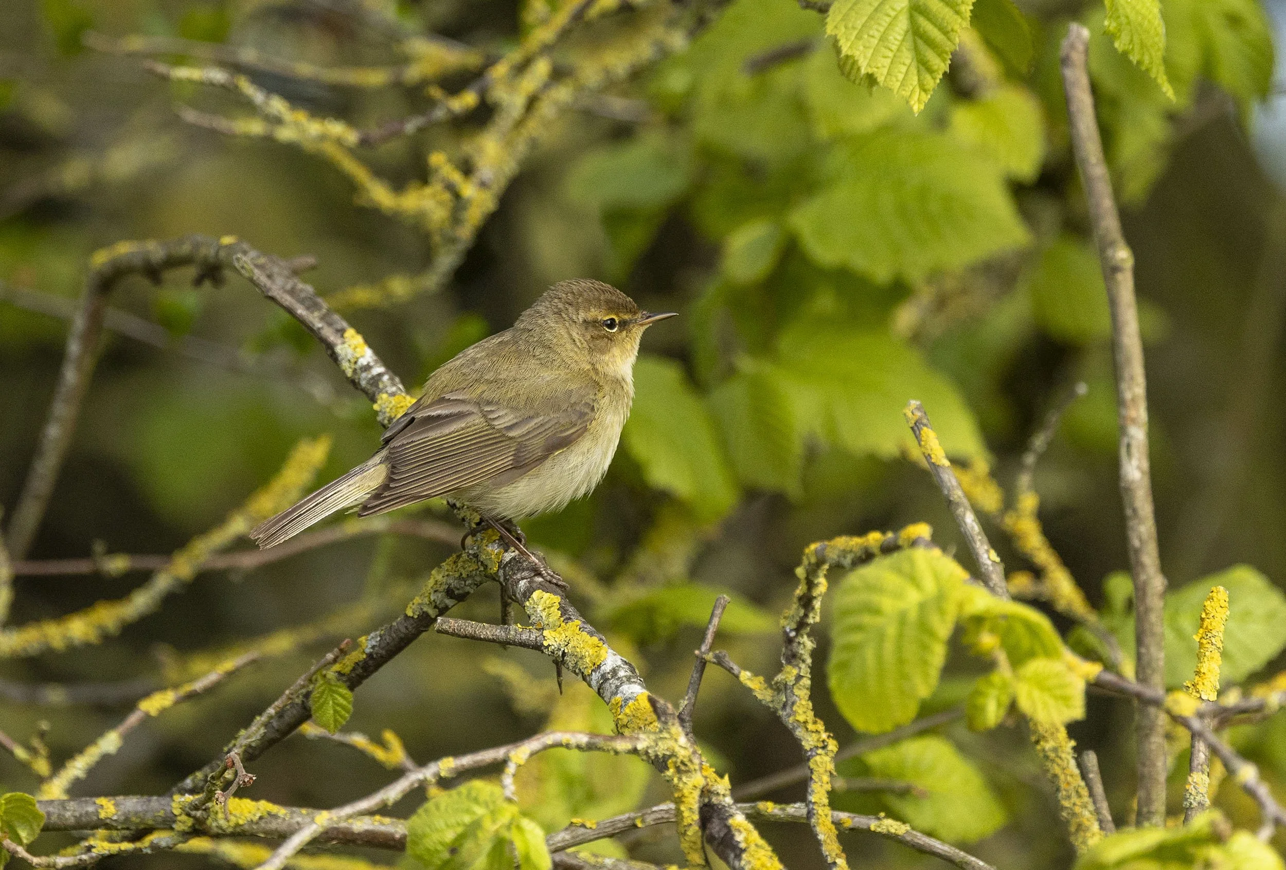 An obliging Chiffchaff in the bright greenery that has suddenly developed
