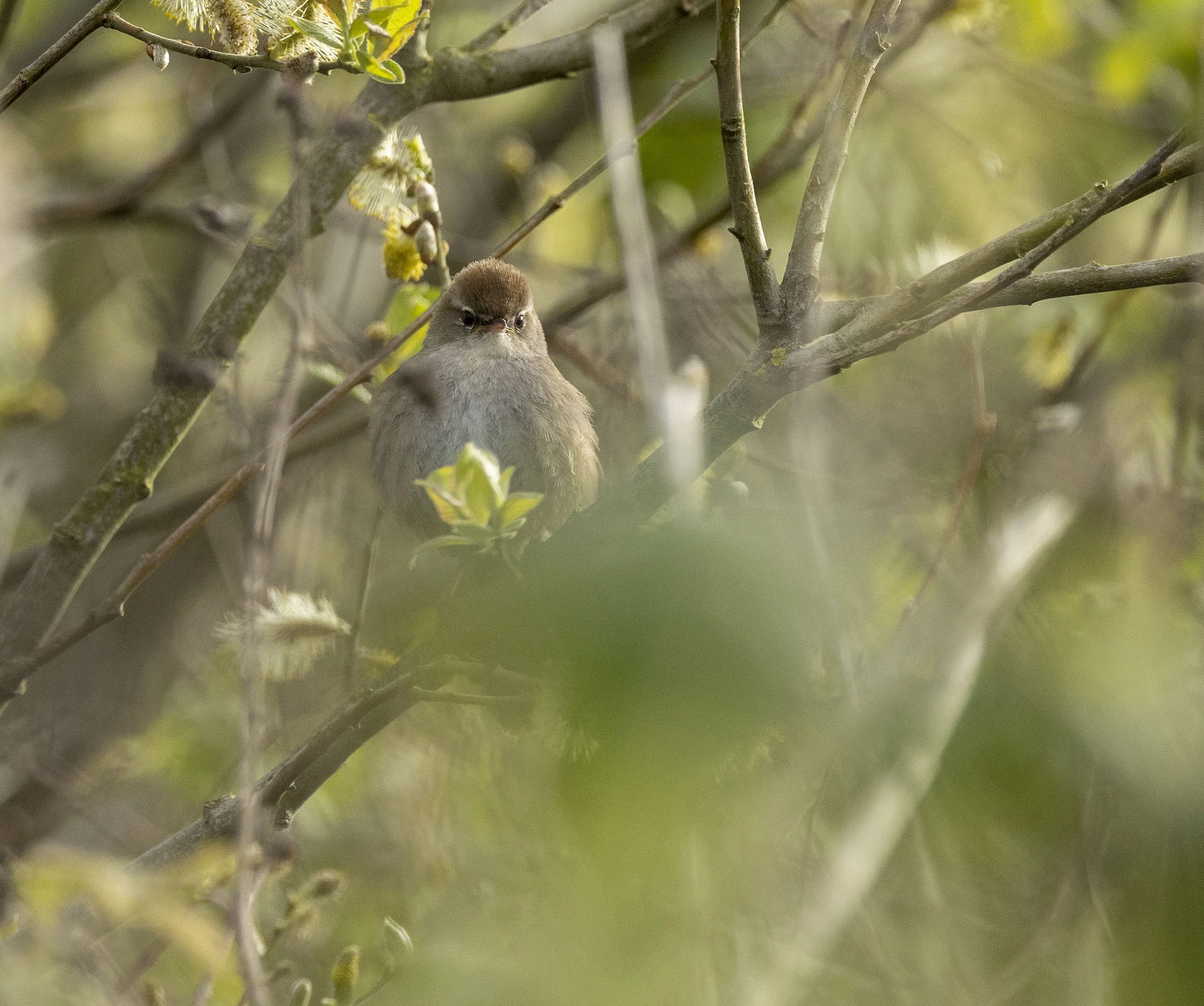92 Willow Warbler in a willow - a very slow trickle of migrants locally so far with many species still absent but good numbers of Sand Martins and record early totals of singing Reed Warblers