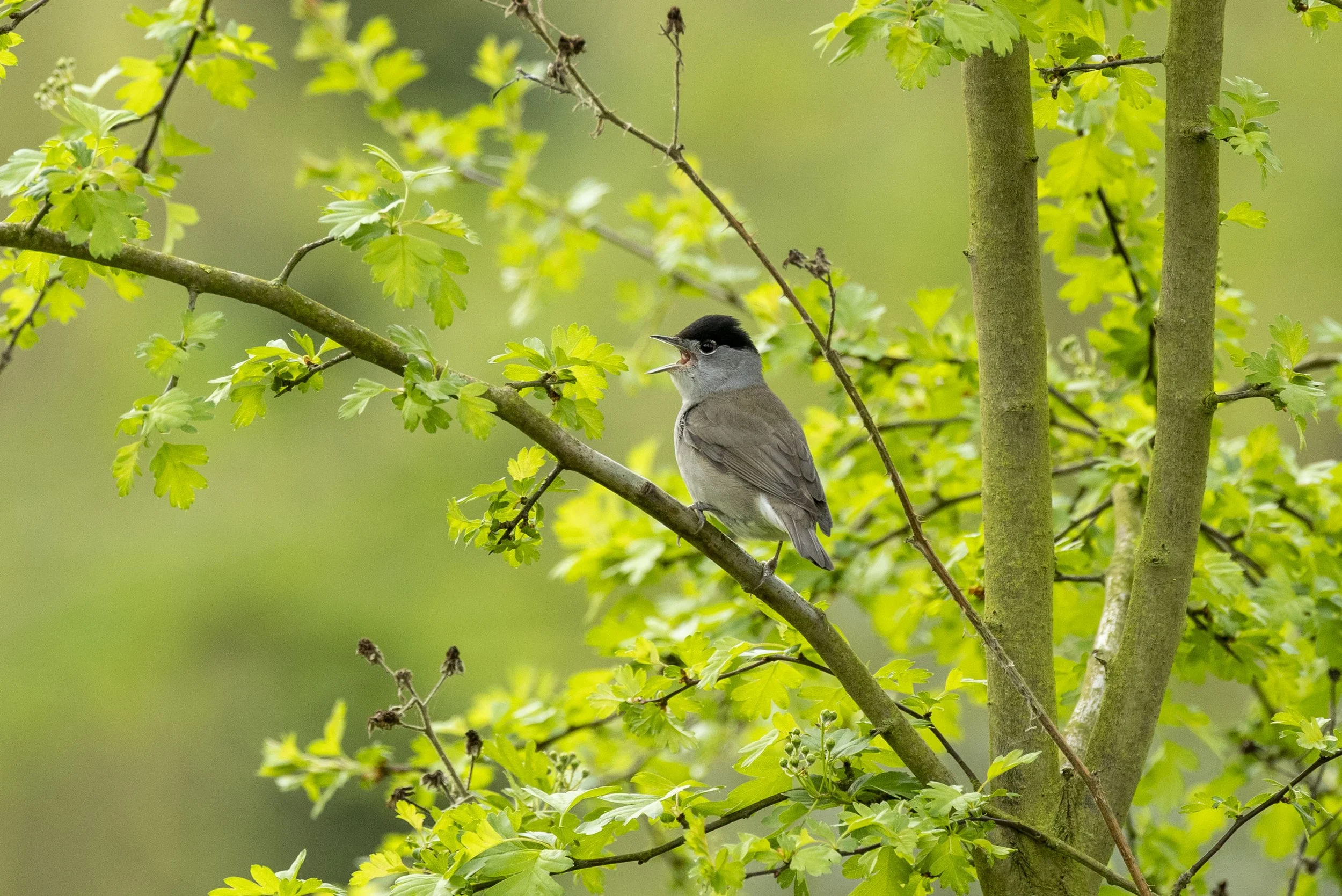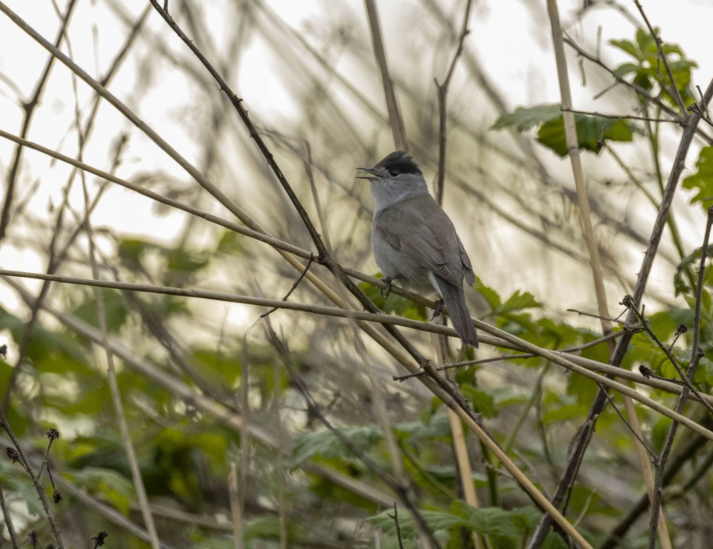 with a new arrival of Blackcaps around the pits there have been some memorable encounters including three fighting at one point and today two having a song off in the presence of two females - always nice to get a few images while the leaves are bright and fresh