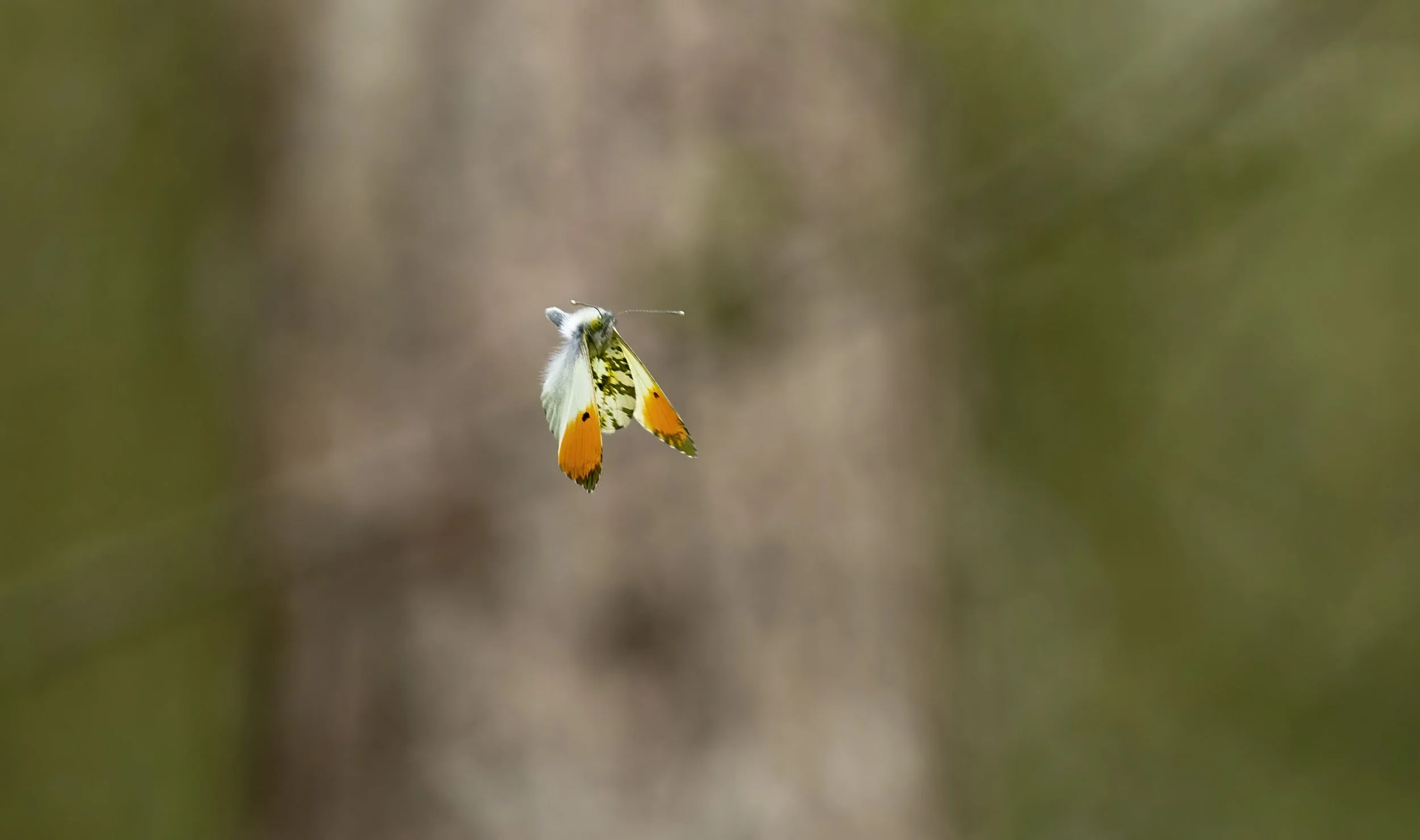 male Orange-tip butterfly searching out a female in the Waters’ Edge woods