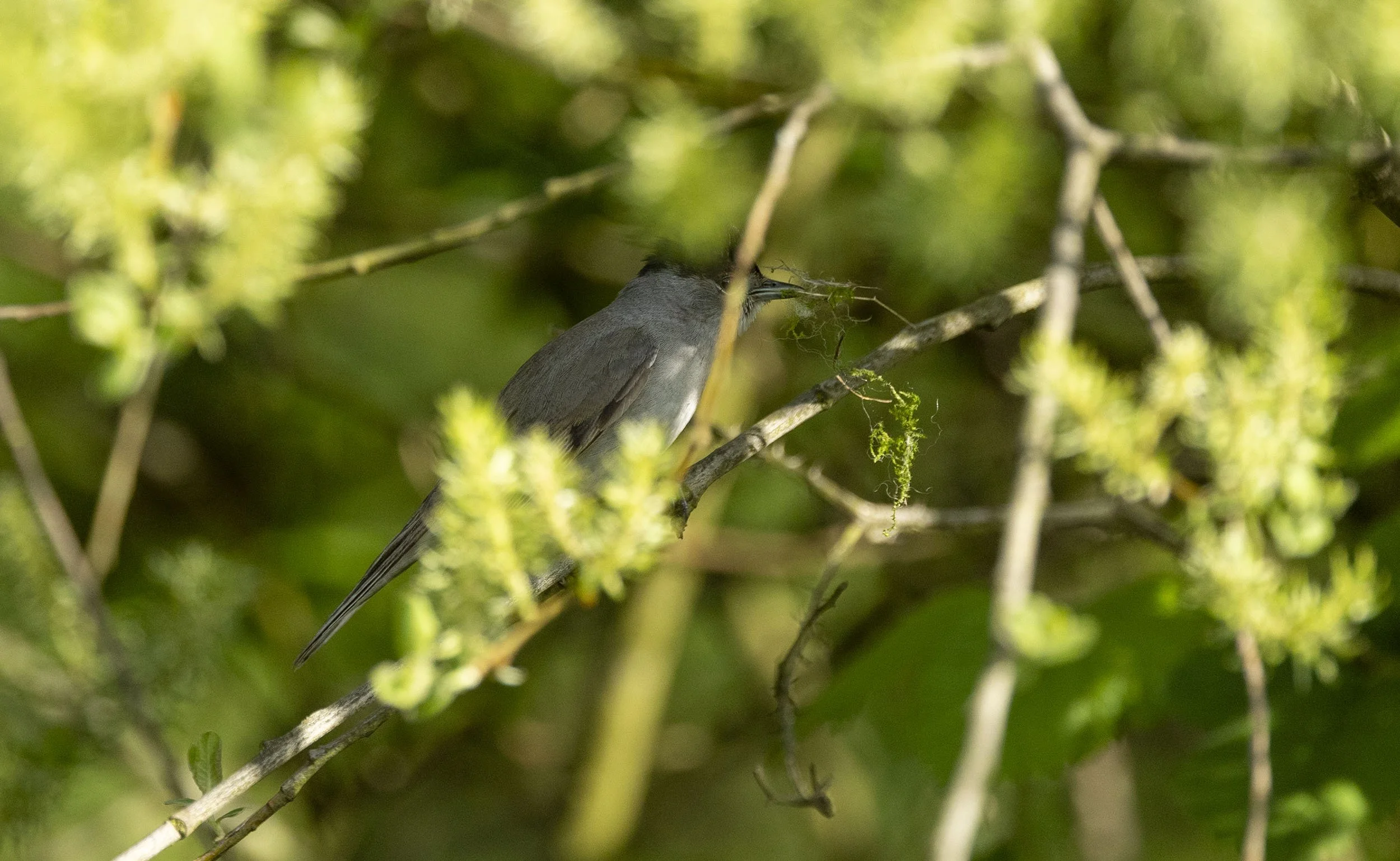 This male adopted the tactic of carrying nest material too impress the girls - no doubt flashing his DIY skills