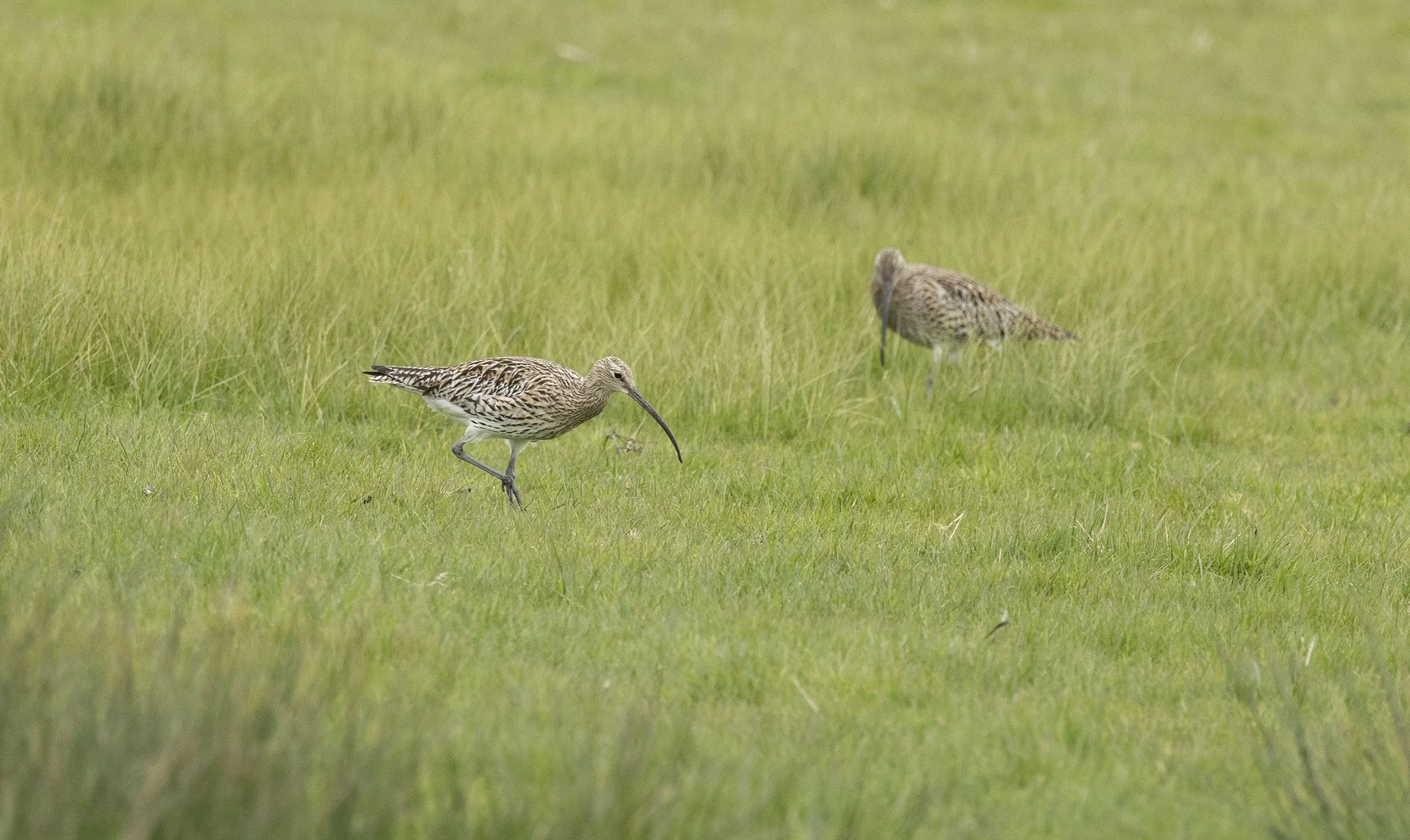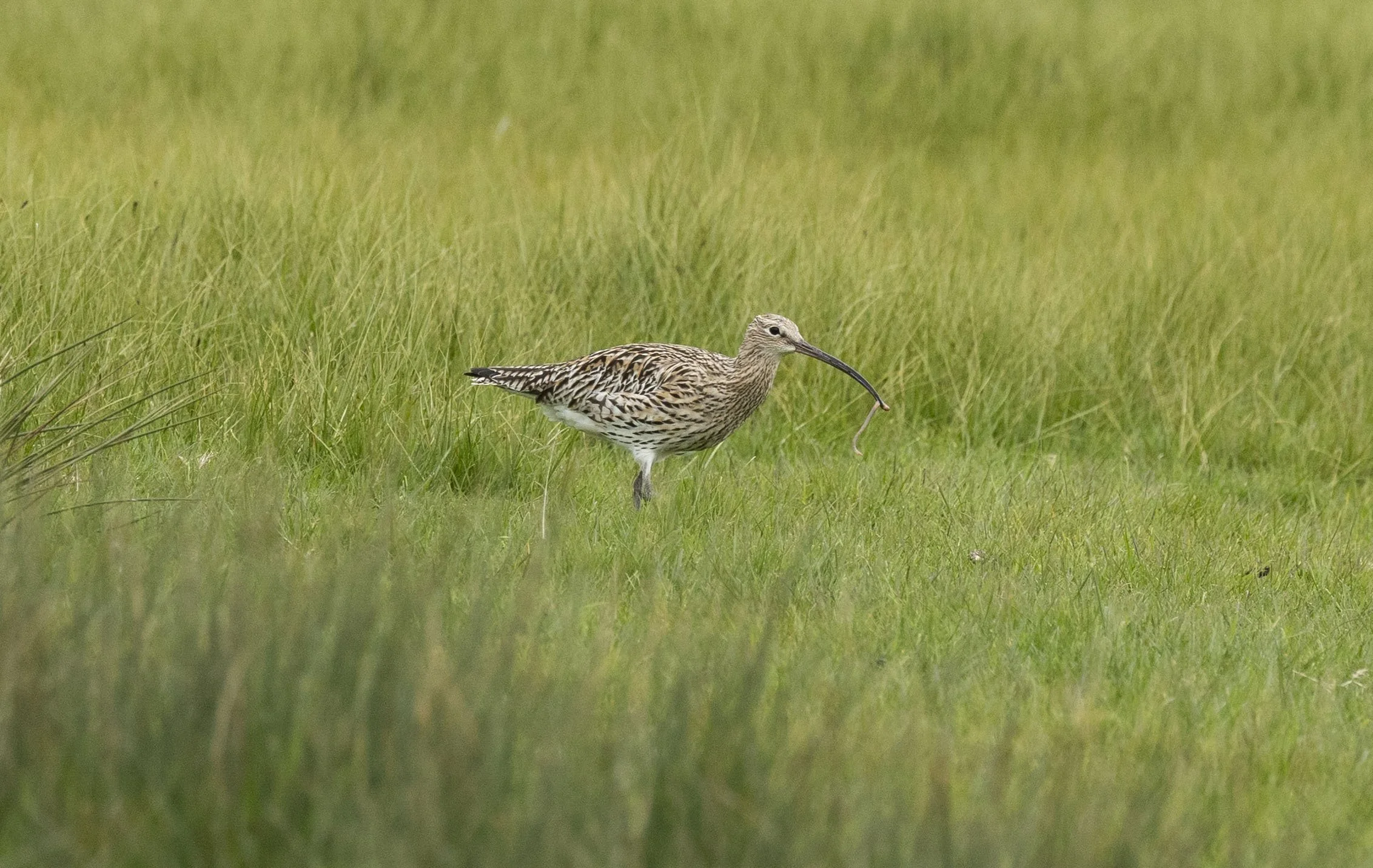 Fattening up on worms in the wet grass fields