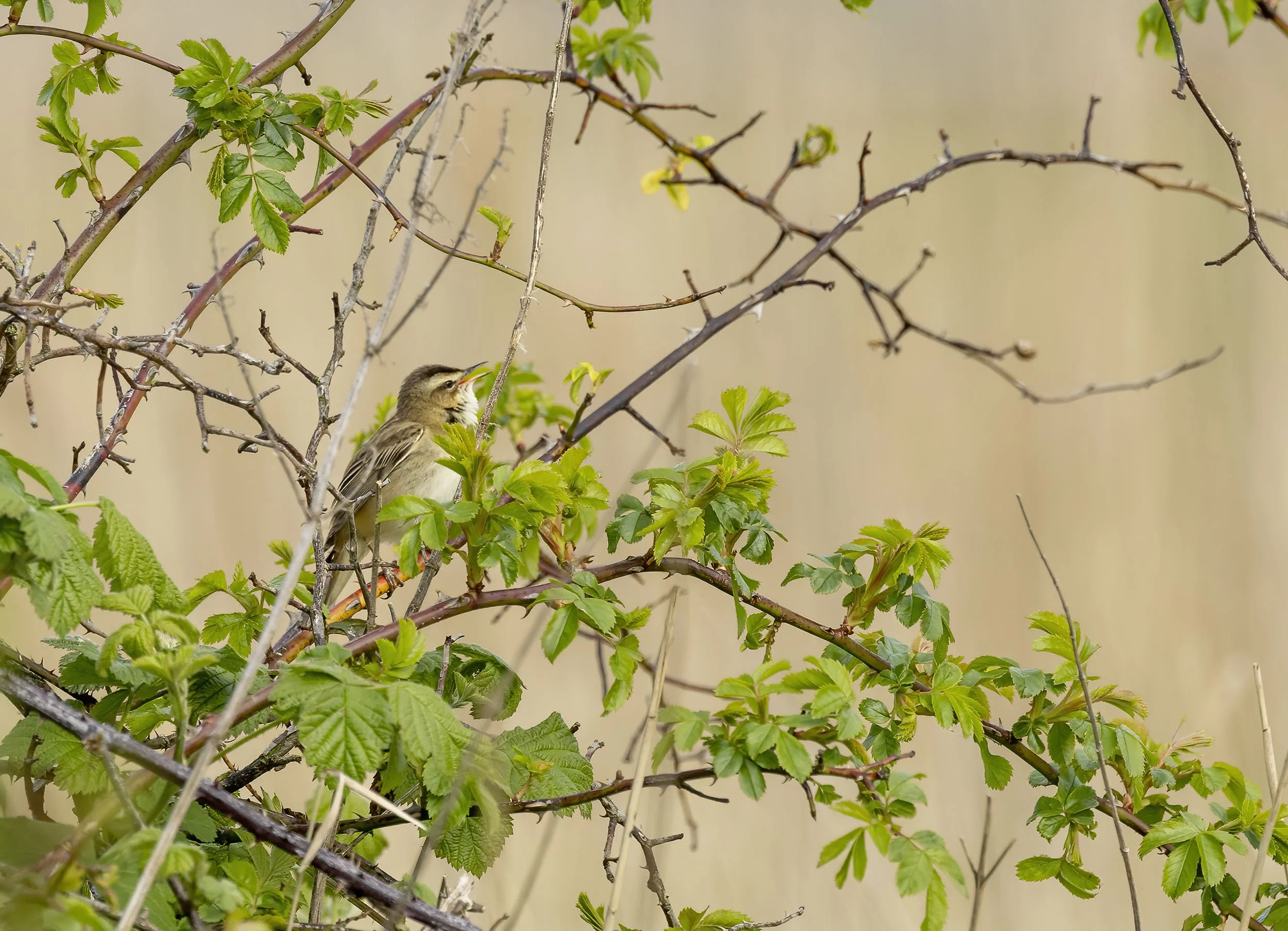 One of seven singing male Sedge Warblers on Waters Edge thus far - a bird in habitat shot