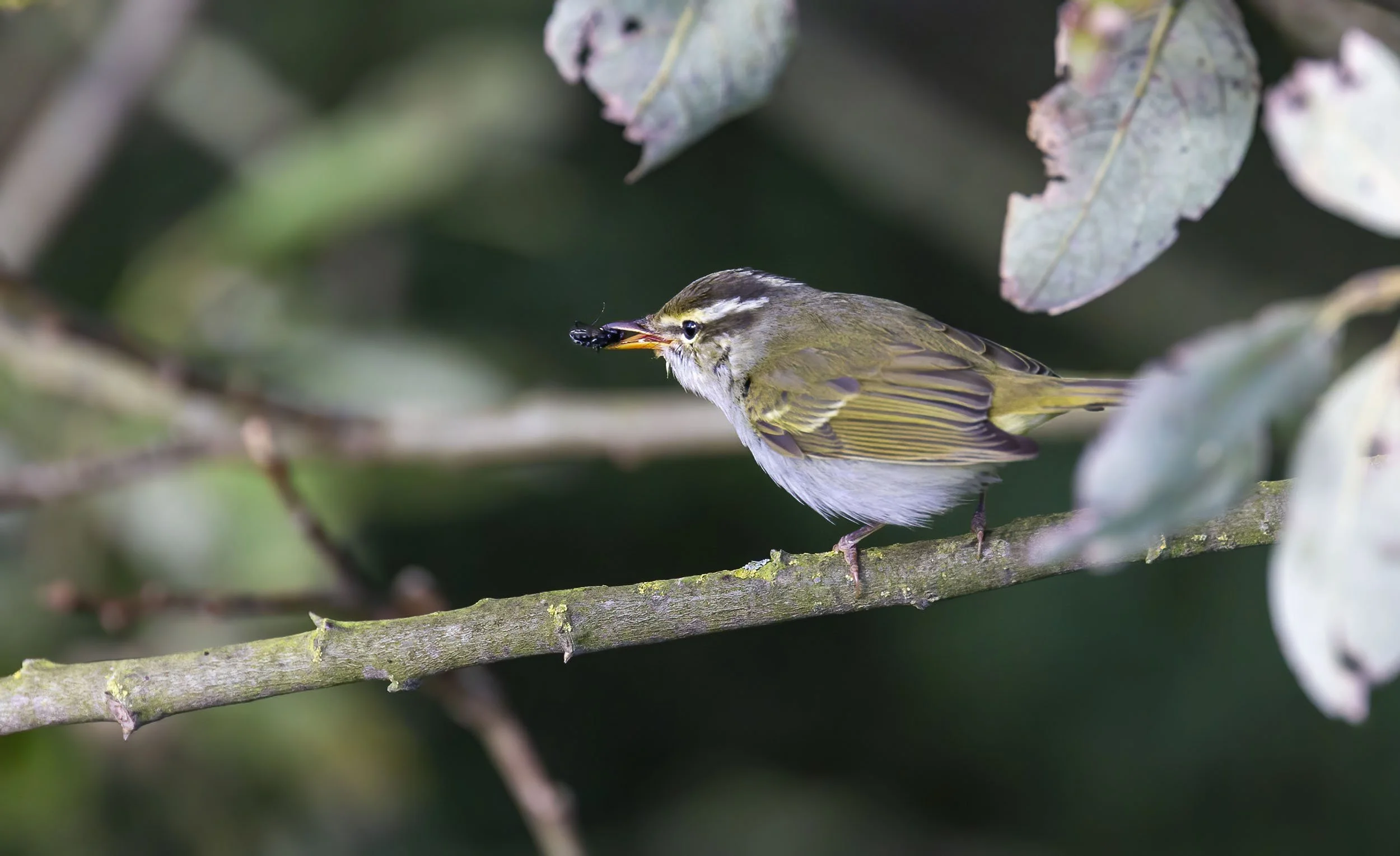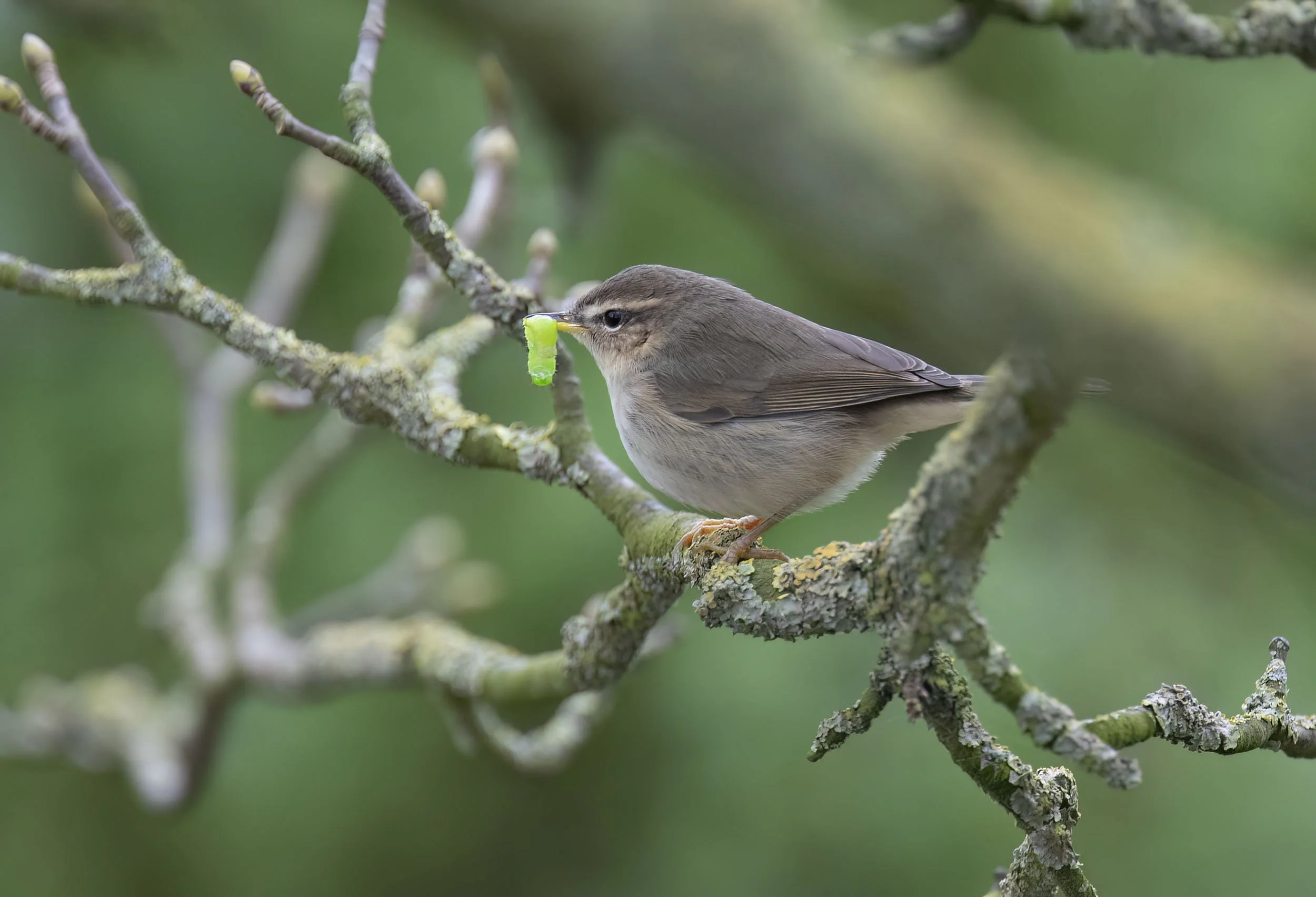An over-wintering Dusky Warbler at Wolla Bank January 2019 with a nice juicy caterpillar