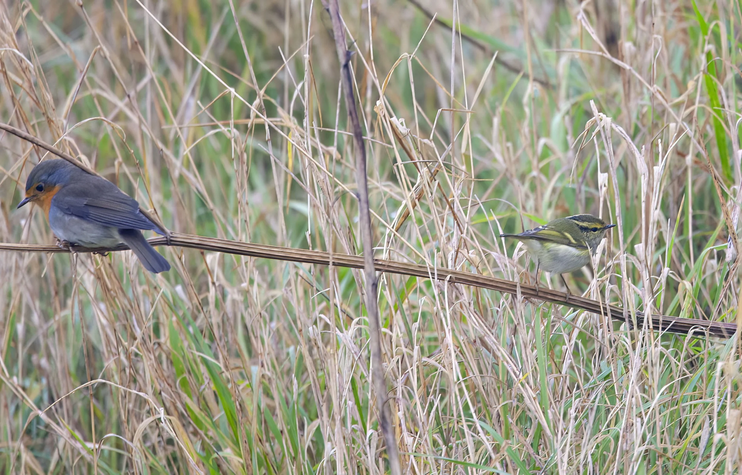 Pallas’s Warbler and continental Robin Pyes Hall November 4th 2008
