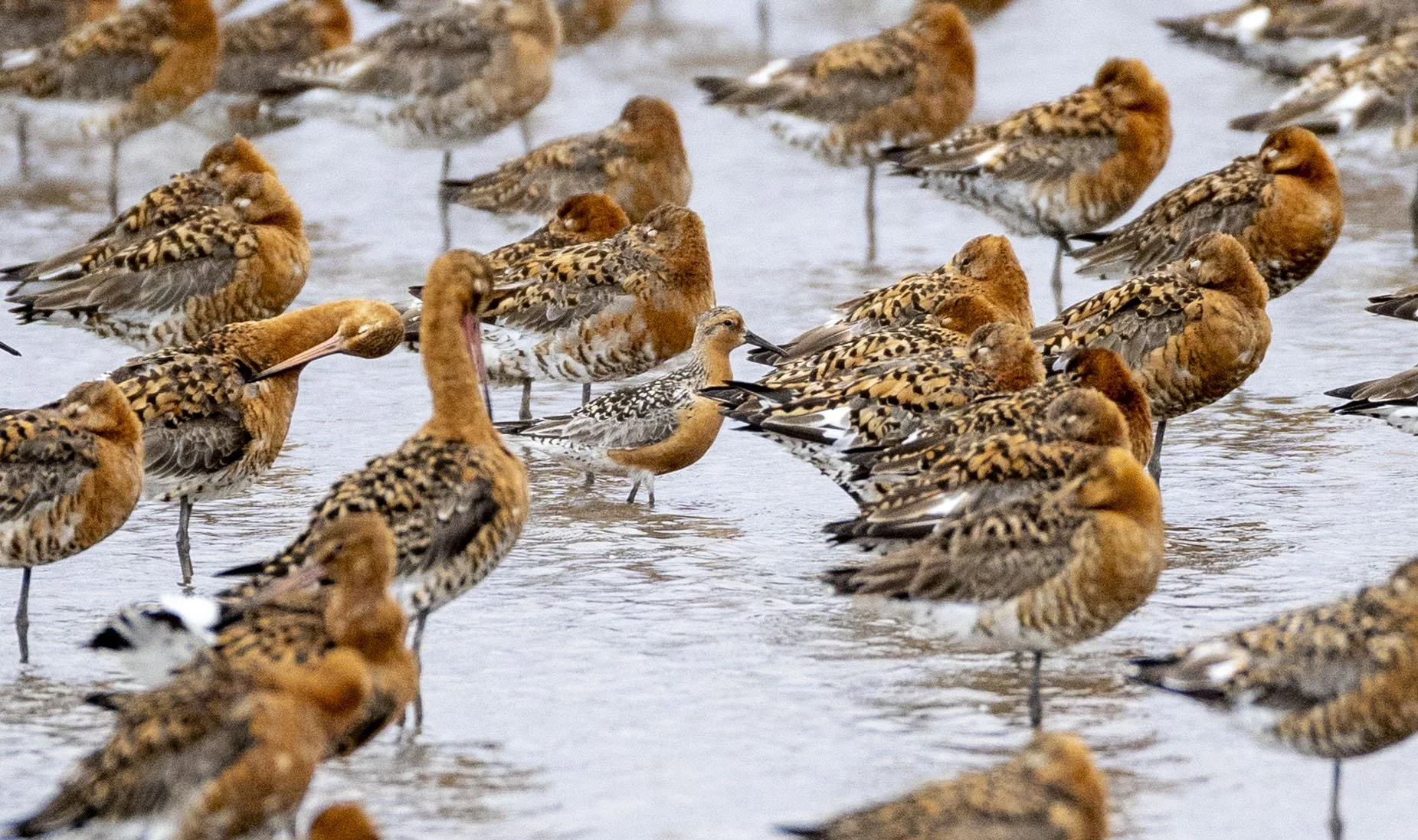 160 Red Knot just to emphasise that in summer they are indeed Red - amongst its friendly Icelandic Black-tails