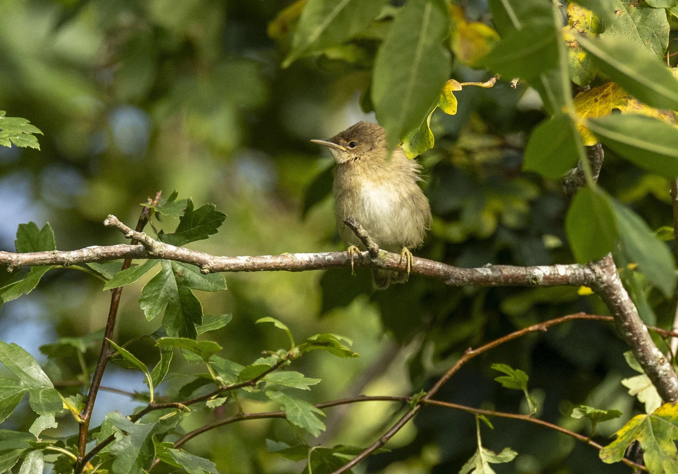juvenile Reed Warbler looking rather grumpy in the Waters Edge trees have abandoned its native habitat