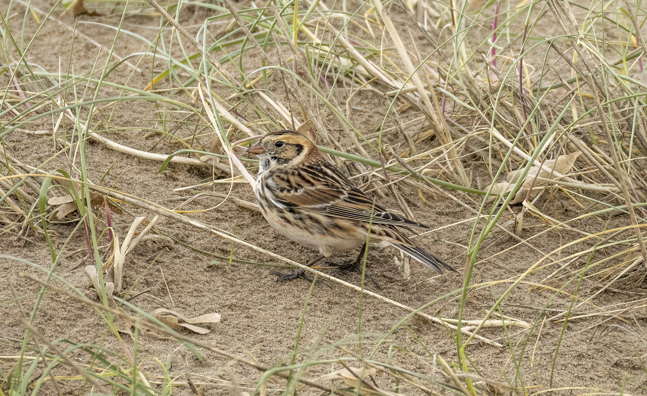 went down the Lincs coast to Theddlethorpe for this male Lapland Bunting - not often you see them well on the deck and getting rarer year on year