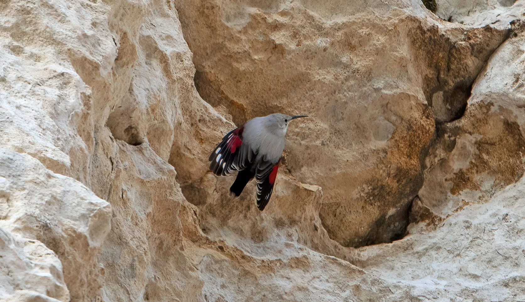 Wallcreeper on the honeycombed southern cliffs of Les Baux