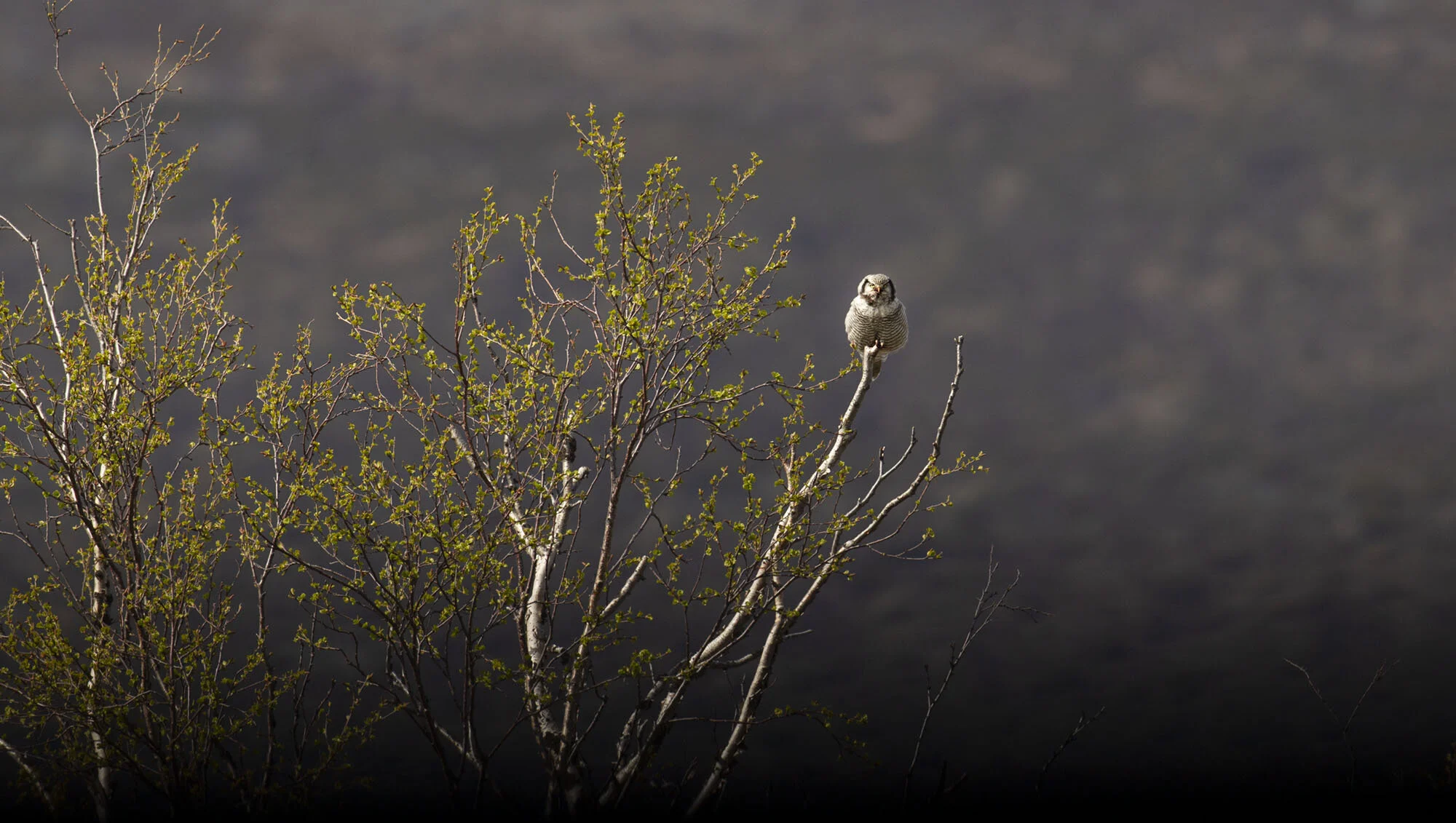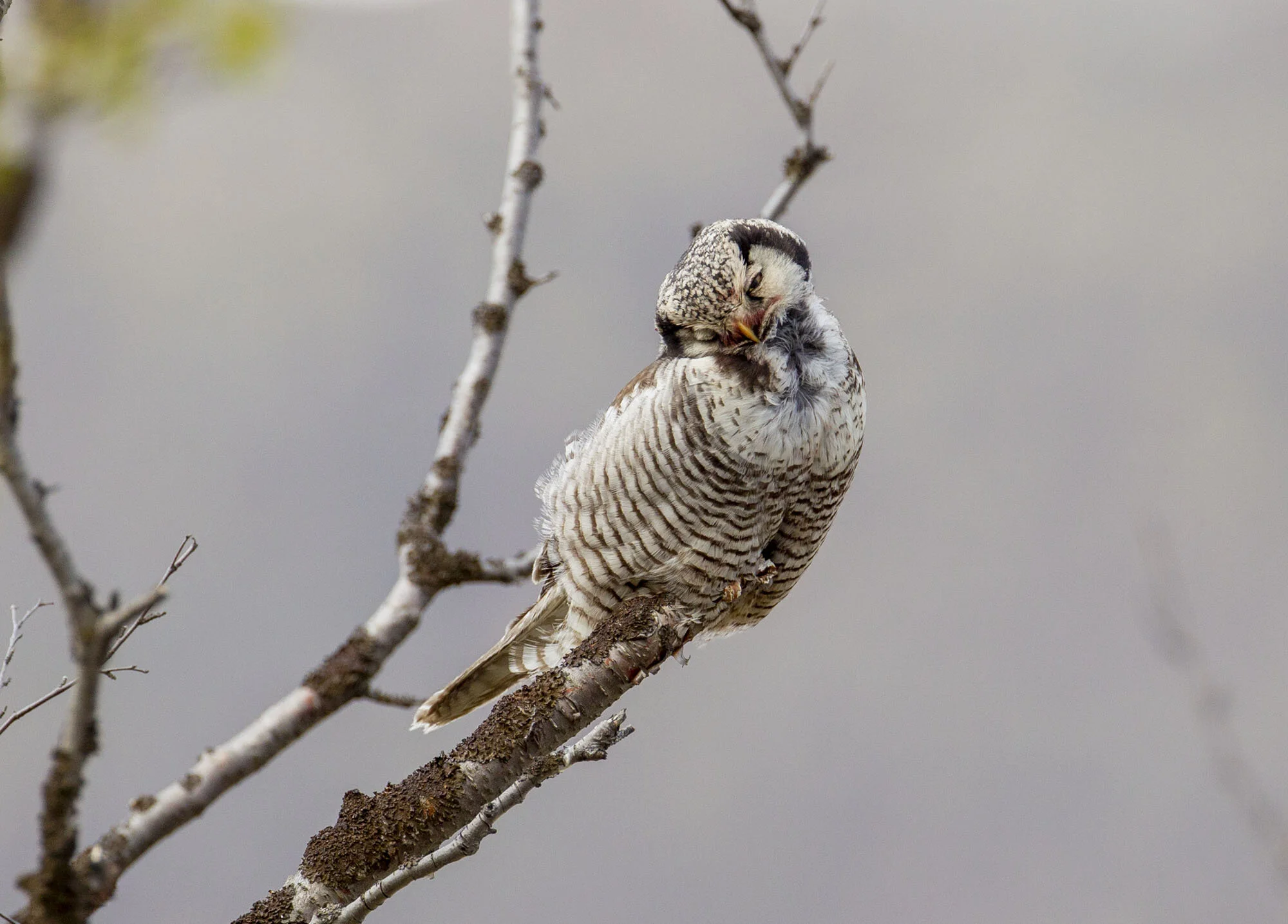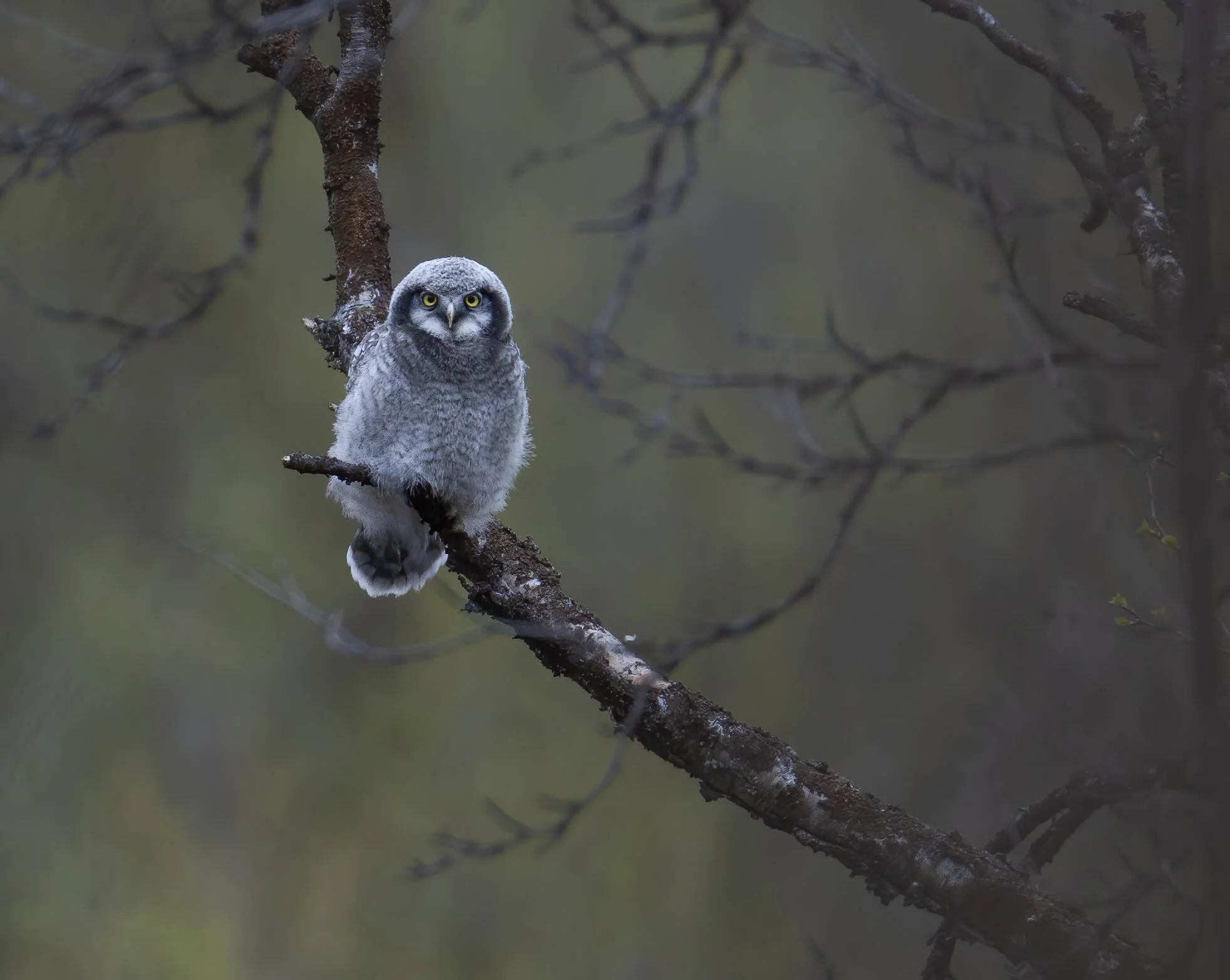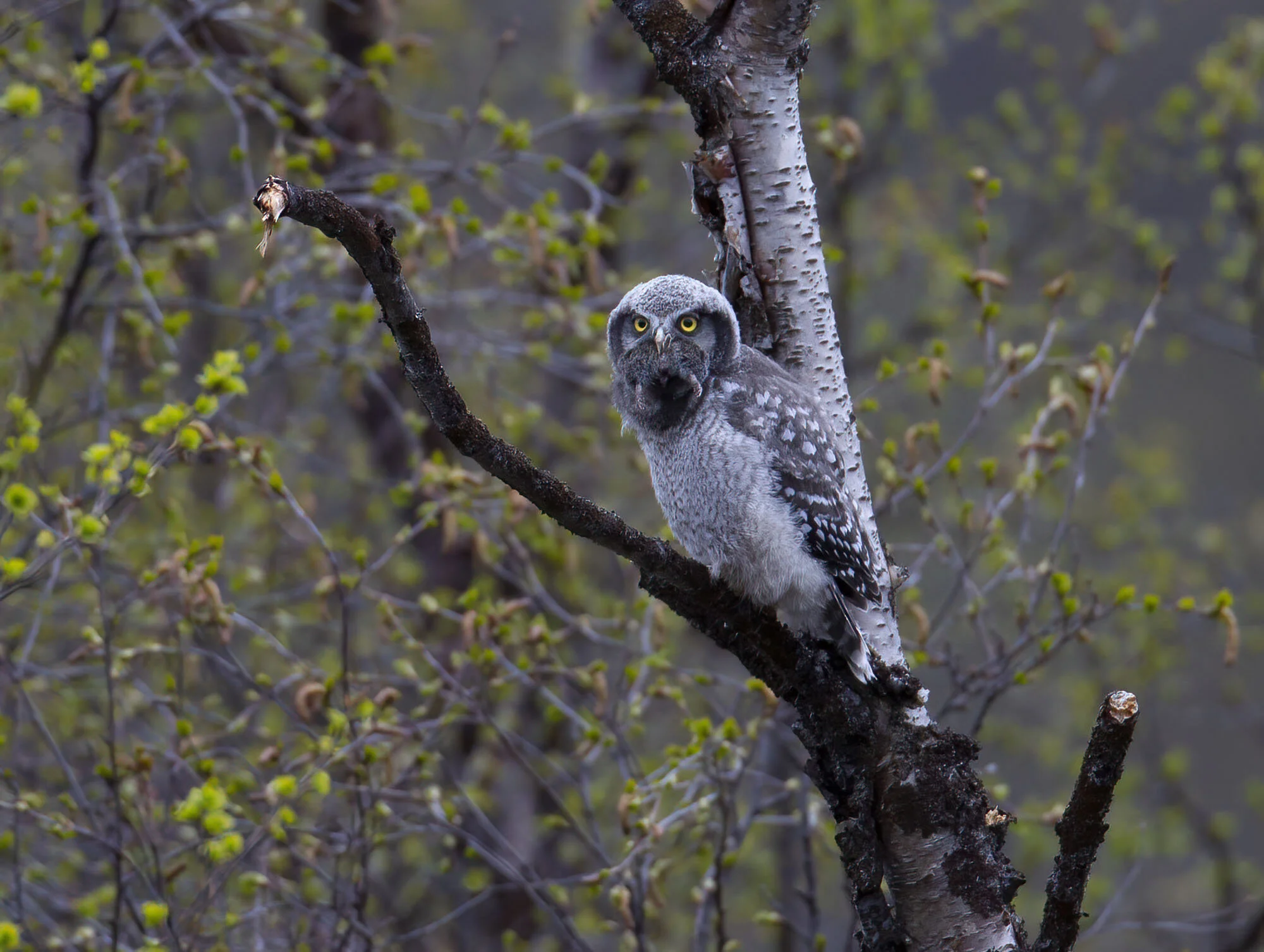 During a trip to Varanger in June 2012 we were fortunate to find there had been a bumper breeding season for Hawk Owls in the area with excellent vole numbers. In the course of the week in the area we came across six pairs with young most of which were out of the nest already but one nest at higher elevations on the road up towards the Batsfjord tundra still had young in the nest. The main problem for photography was that the weather was a bit dismal most of the time with a lot of thick cloud and some rain while the adults were often liberally blood splattered around the facial disk! Below is a selection of images from the week.