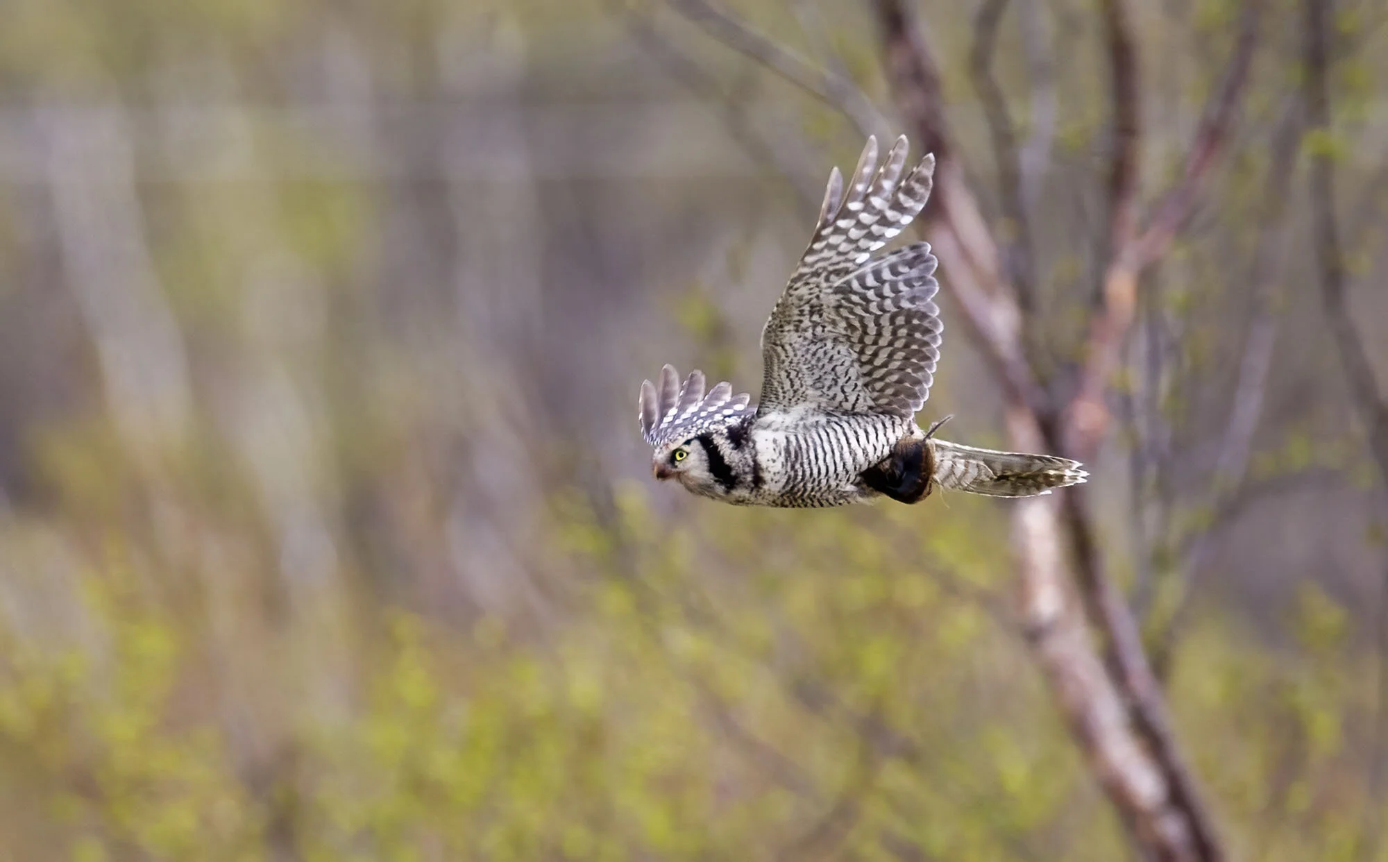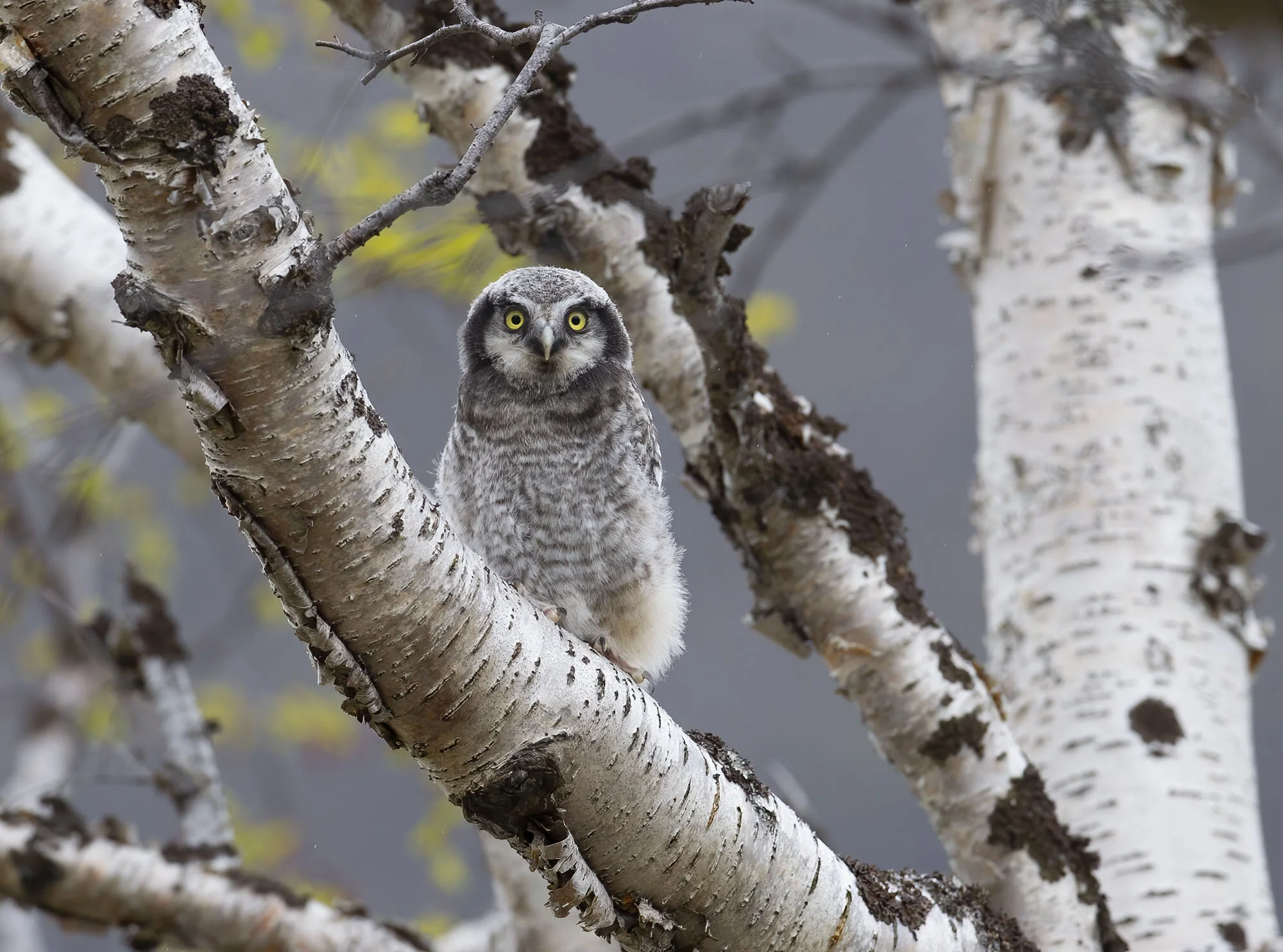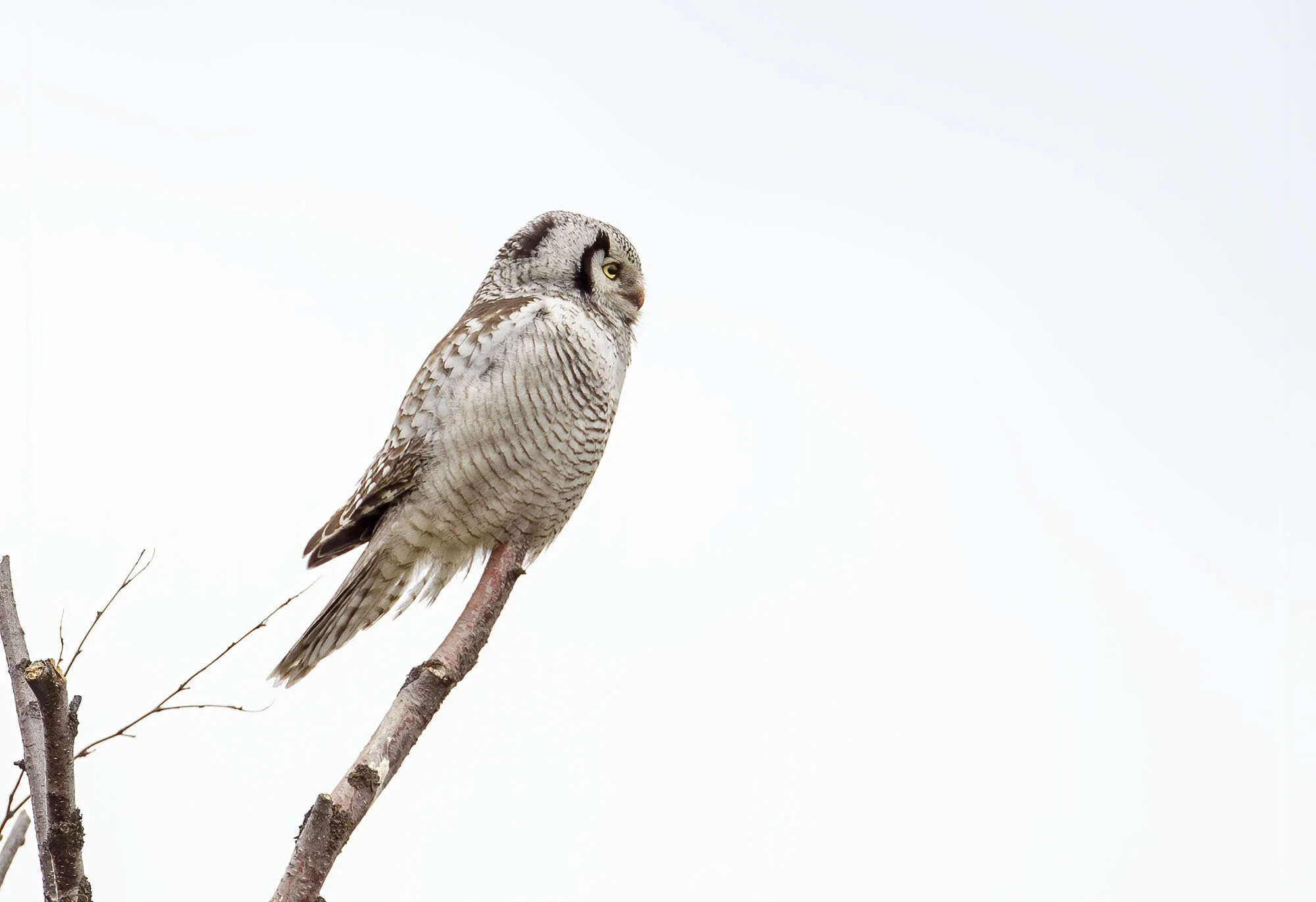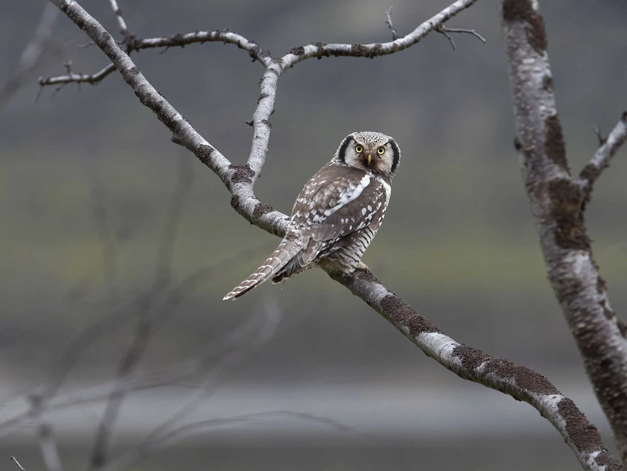 During a trip to Varanger in June 2012 we were fortunate to find there had been a bumper breeding season for Hawk Owls in the area with excellent vole numbers. In the course of the week in the area we came across six pairs with young most of which were out of the nest already but one nest at higher elevations on the road up towards the Batsfjord tundra still had young in the nest. The main problem for photography was that the weather was a bit dismal most of the time with a lot of thick cloud and some rain while the adults were often liberally blood splattered around the facial disk! Below is a selection of images from the week.