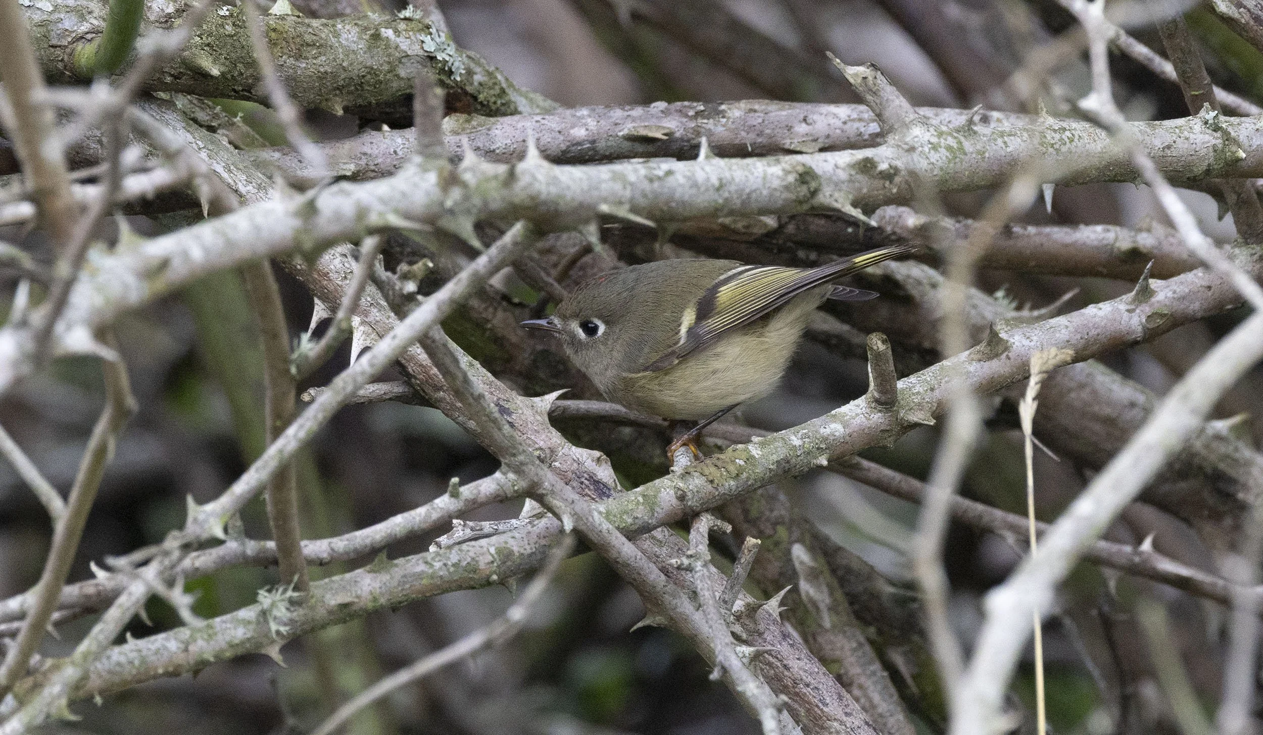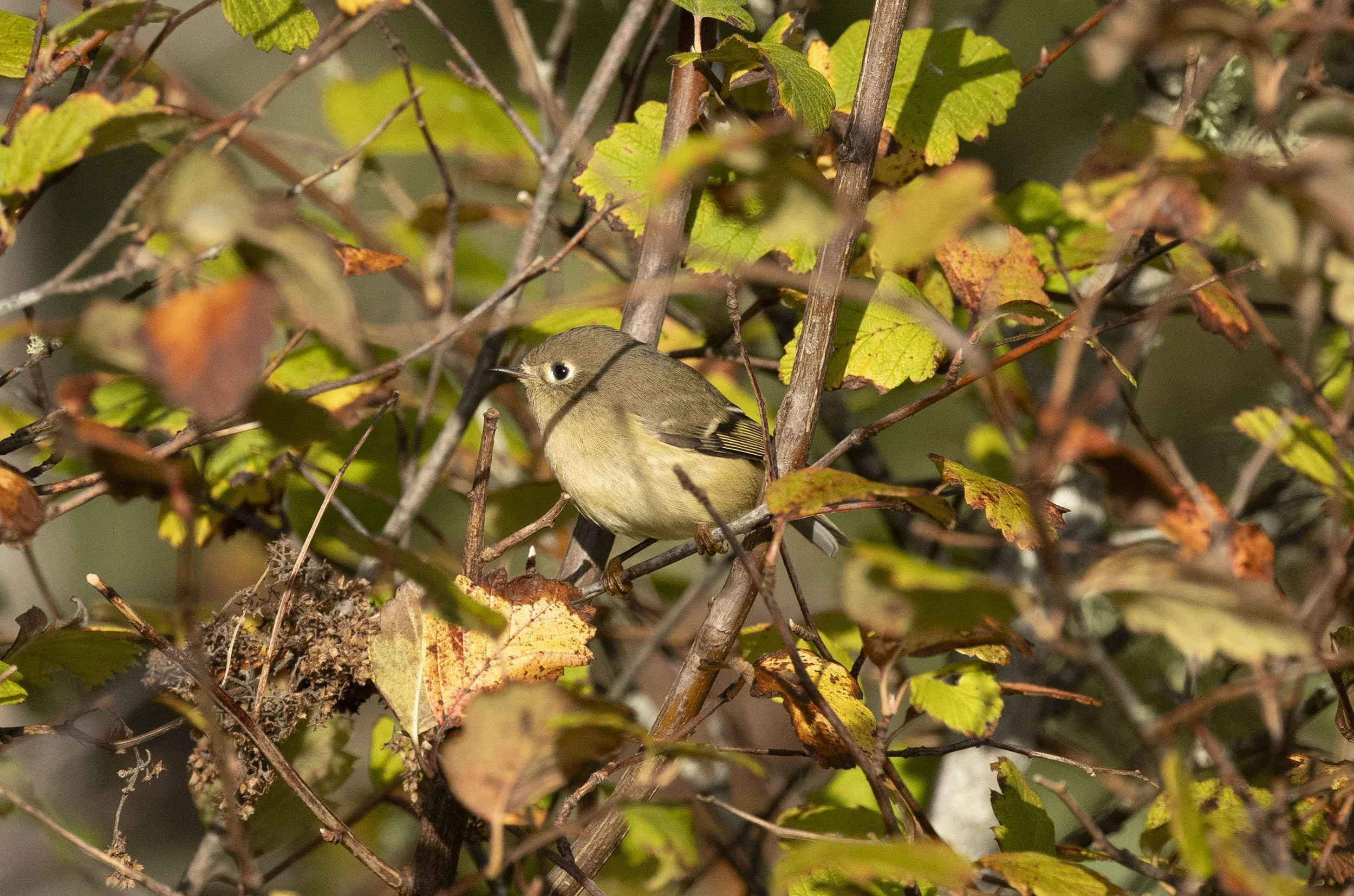 Ruby-crowned Kinglet in some fall leafage