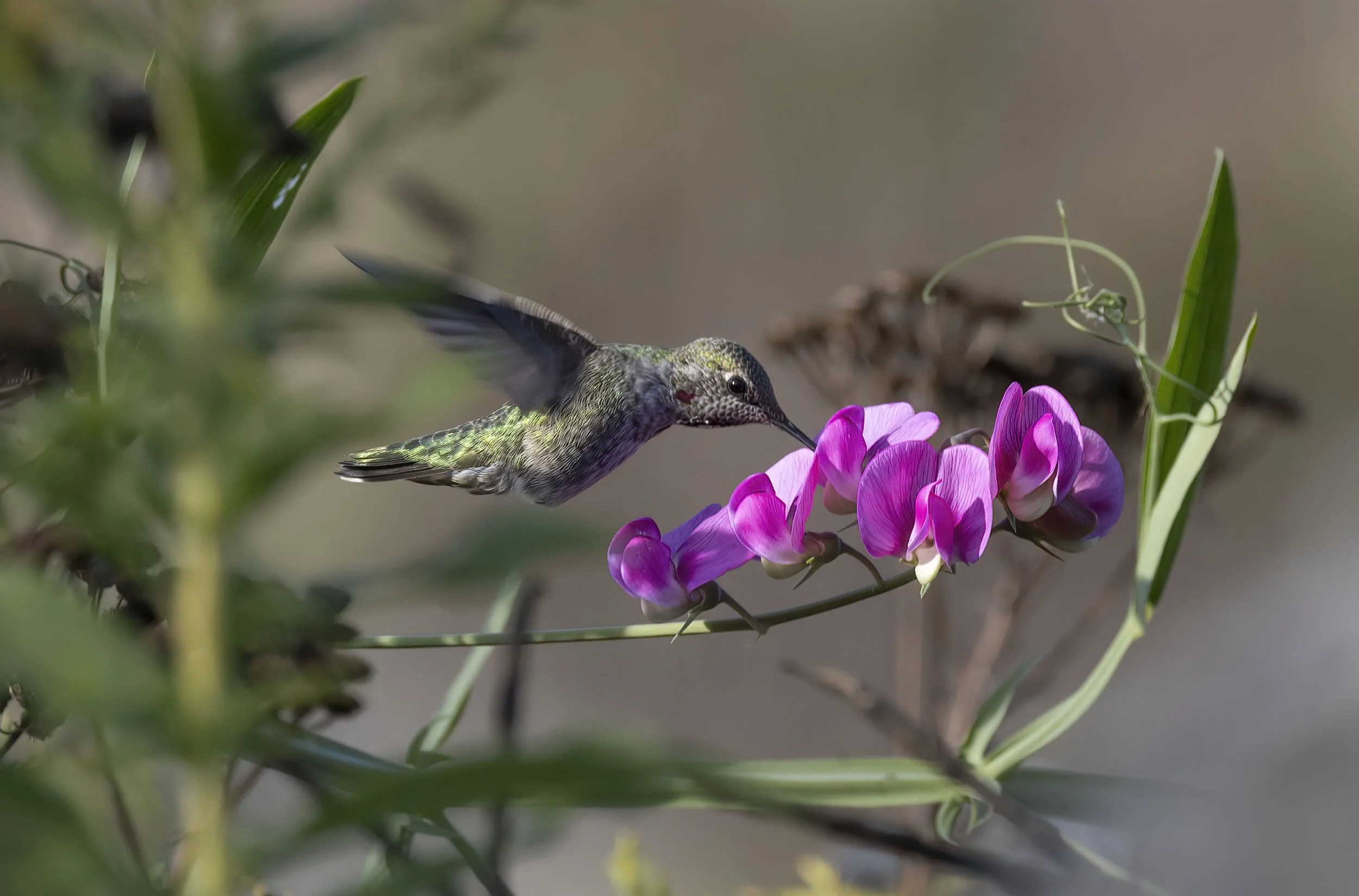 Not a great shot but an Anna’s Hummingbird on a natural flower rather than a plastic feeder