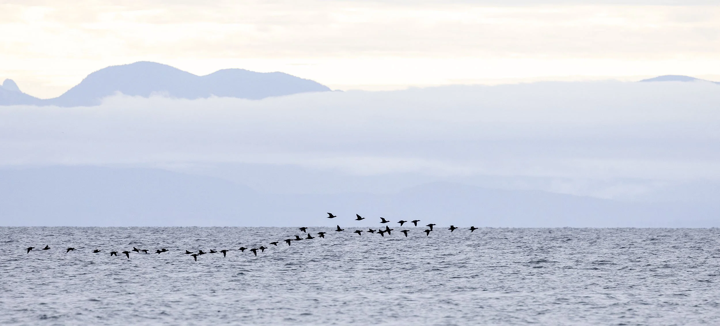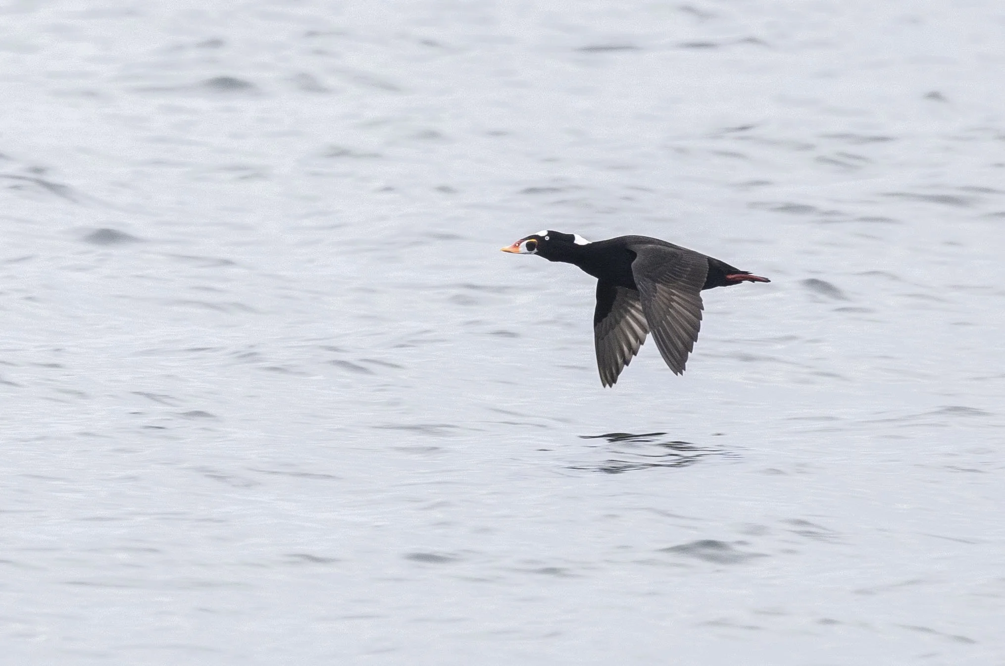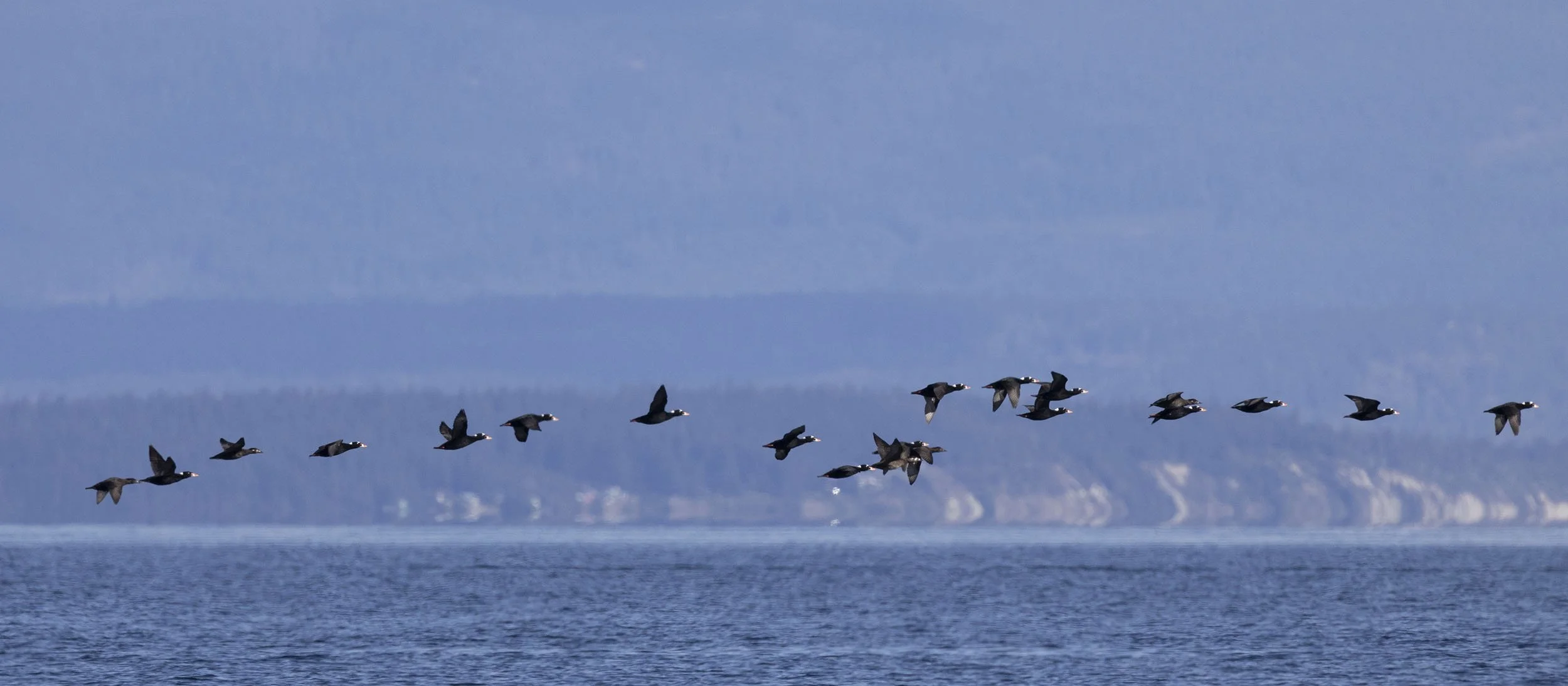 White-winged Scoters moving south through the channel