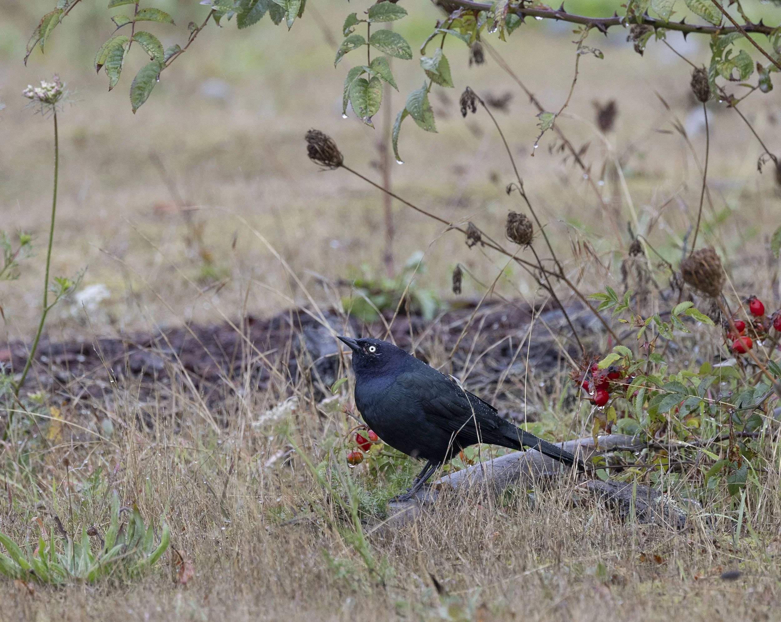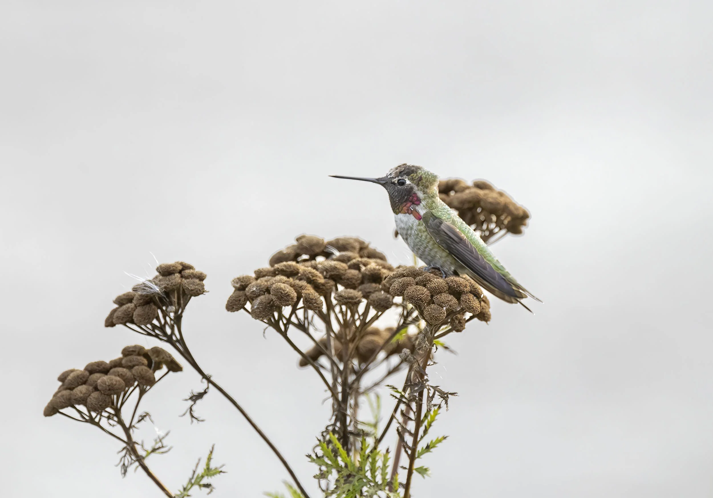 With a distinctly chilly feel it is odd to see Anna’s Humingbirds feeding in weedy areas - this was very poor light and the bird quickly disappeared
