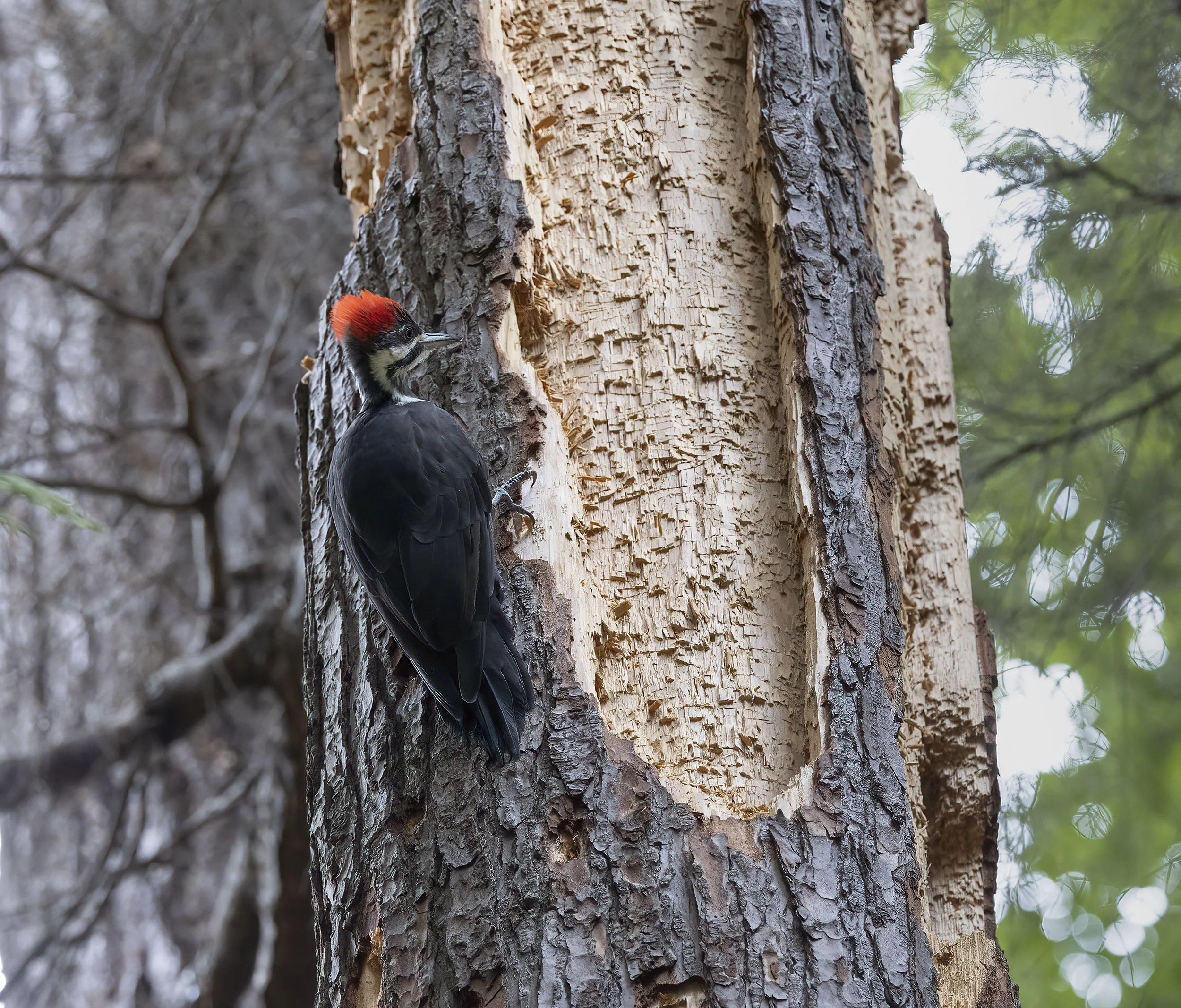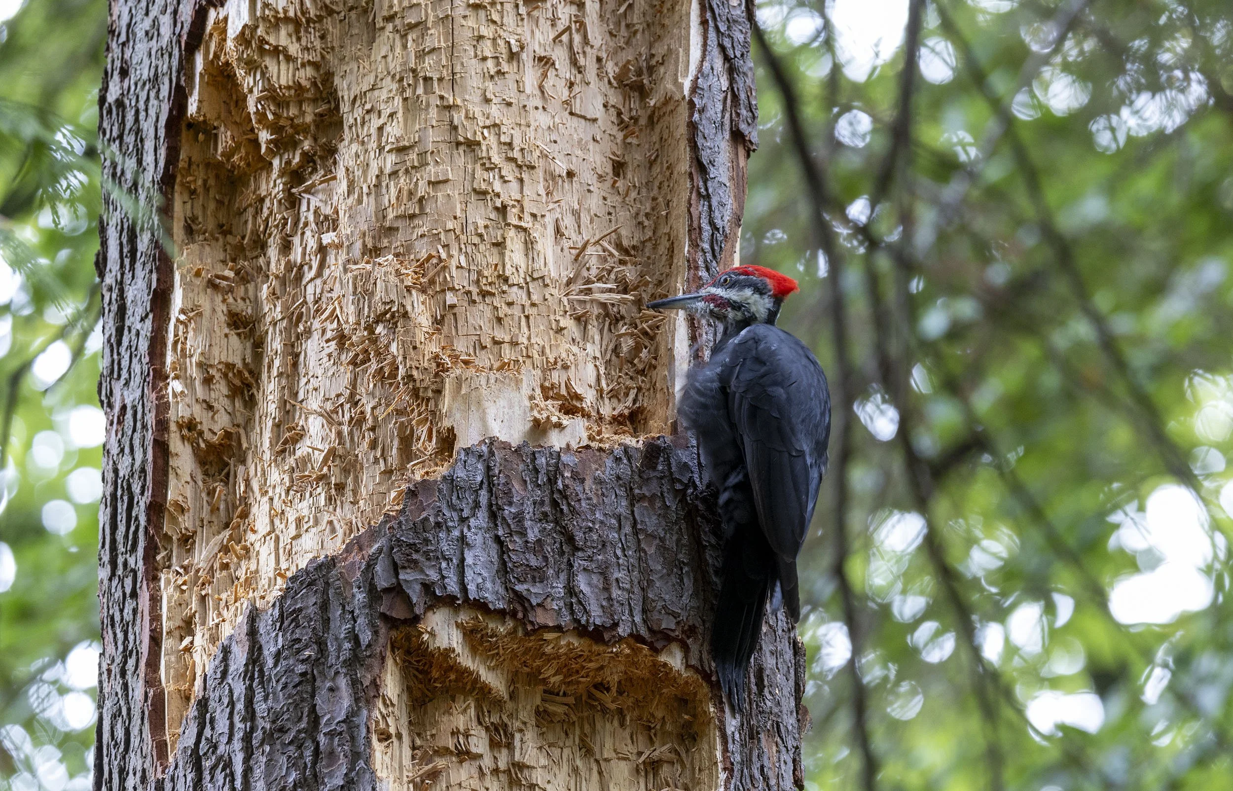 Pileated Woodpecker dismantling a tree in Stanley Park