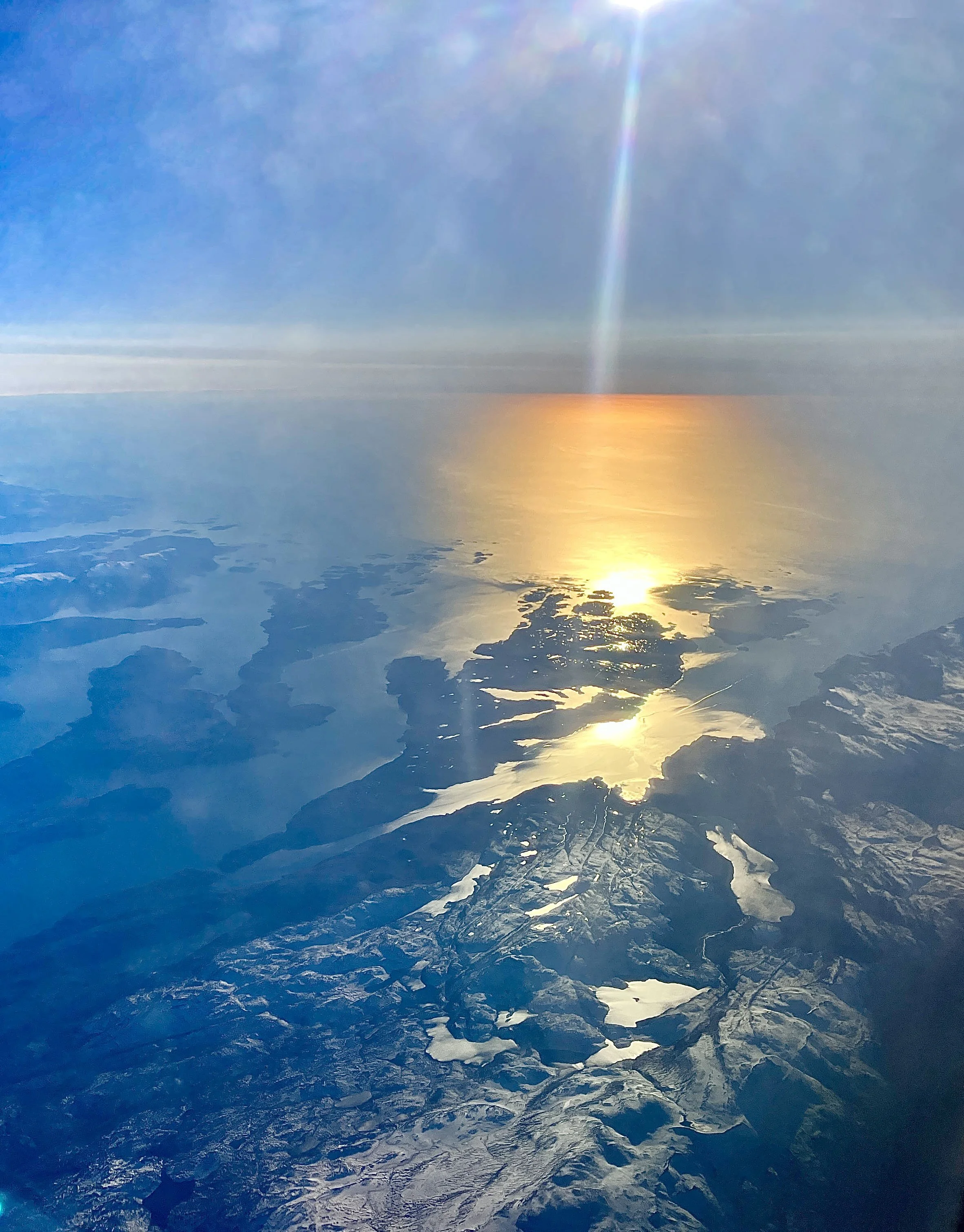 As we passed over Baffin island the sun burst through the cloud and produced this amazing scene