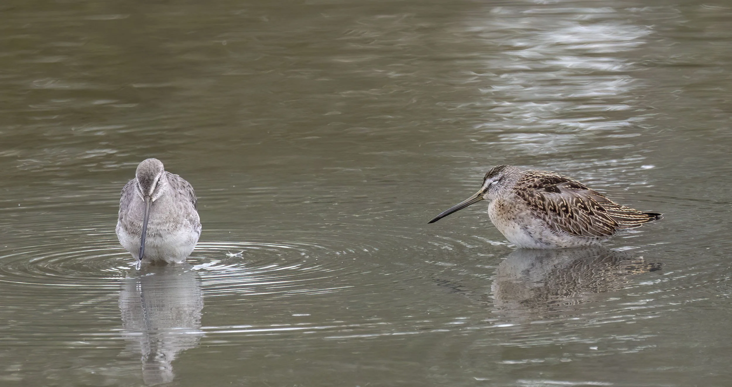 Long-billed Dowitchers both adults and juveniles - although close you are looking down on them most of the time and its difficult getting enough birds in focus