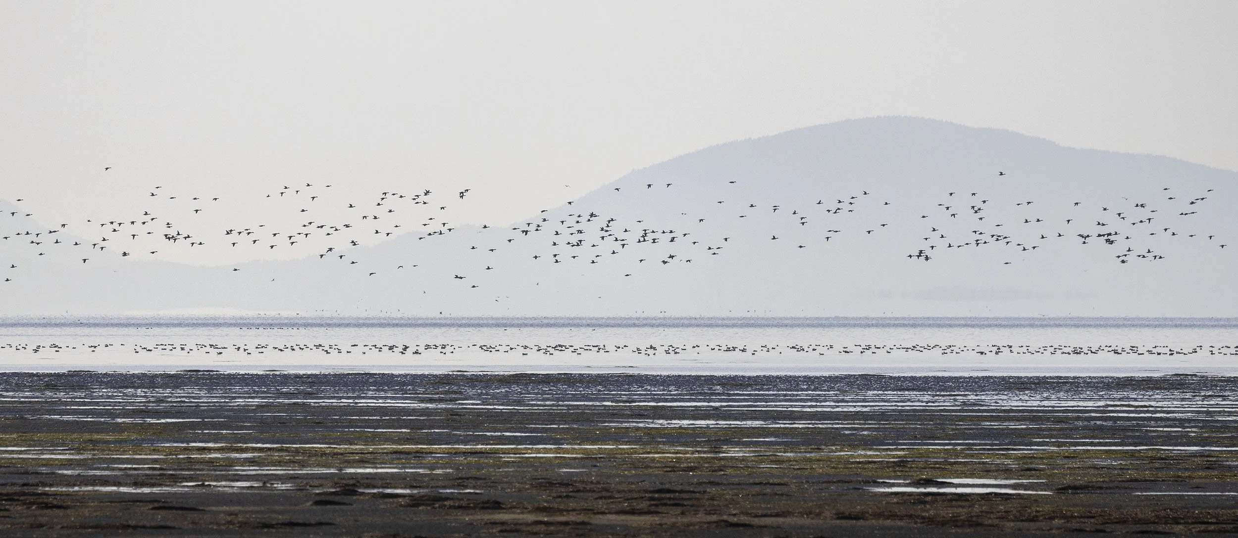 Wildfowl on Boundary Bay at low tide the birds are a long way out