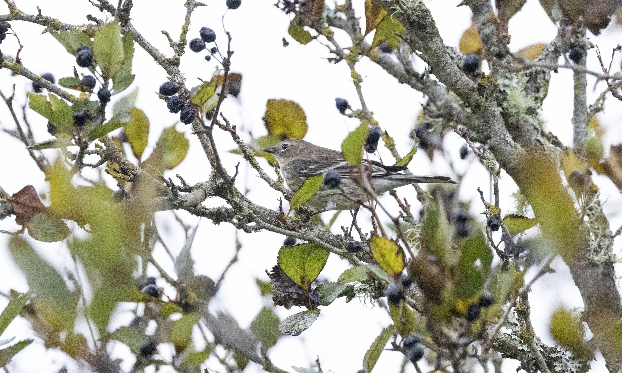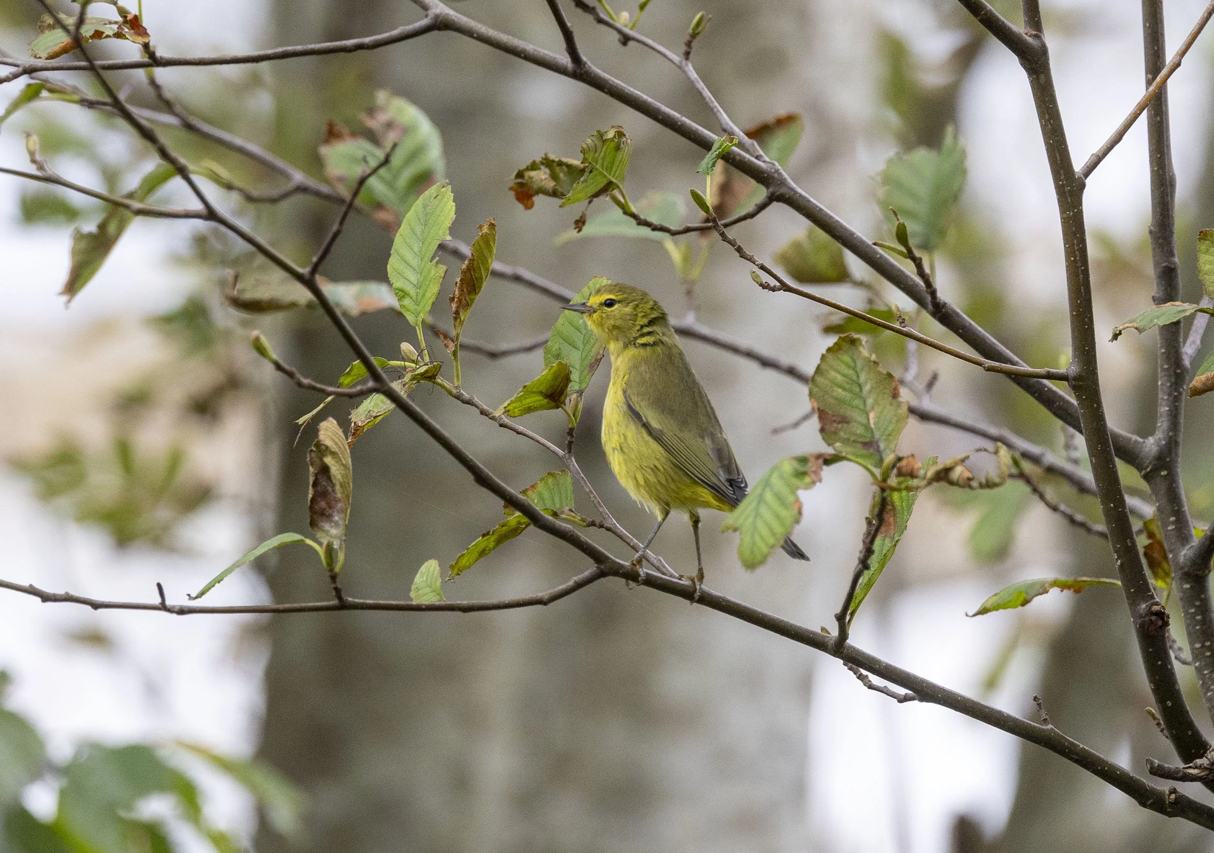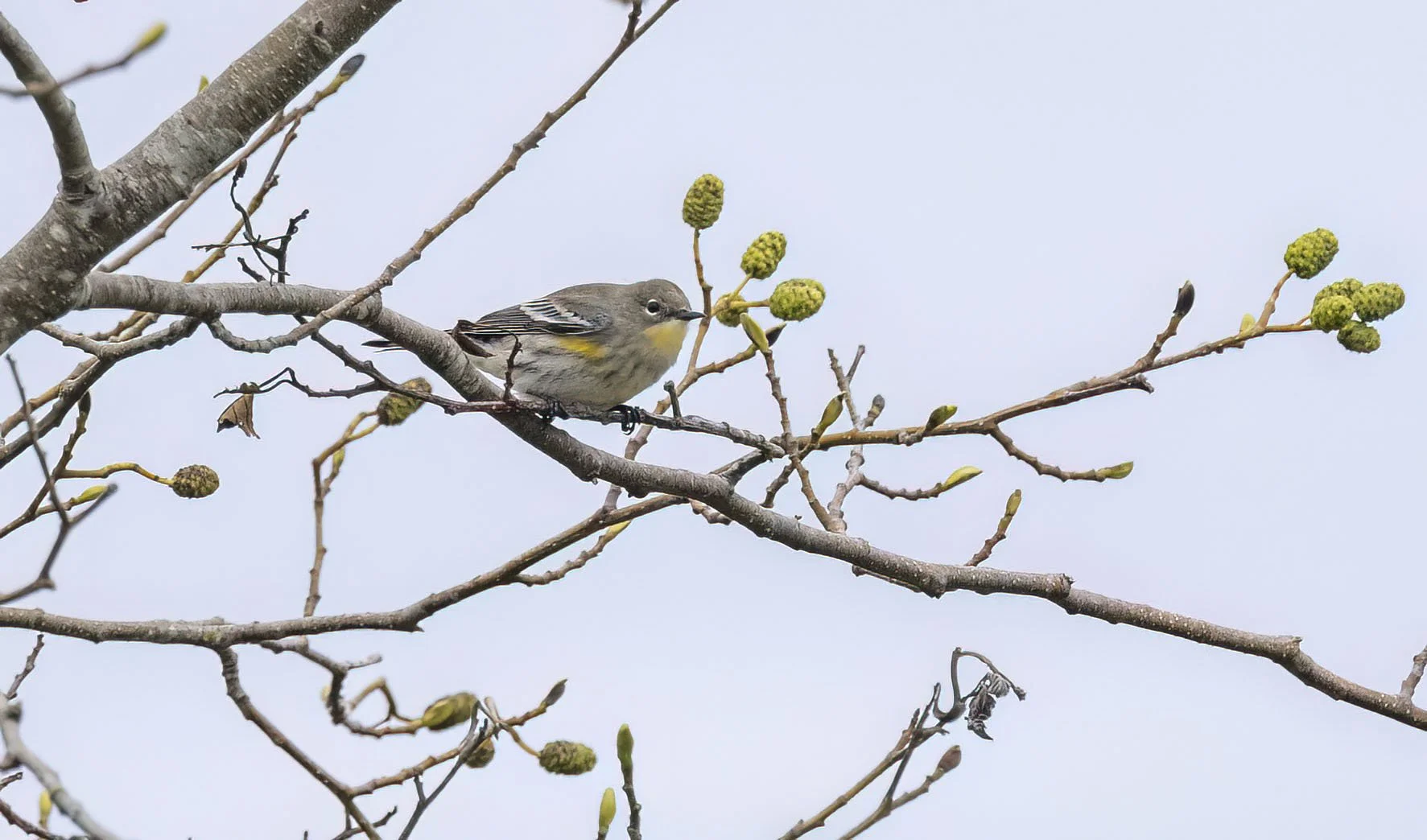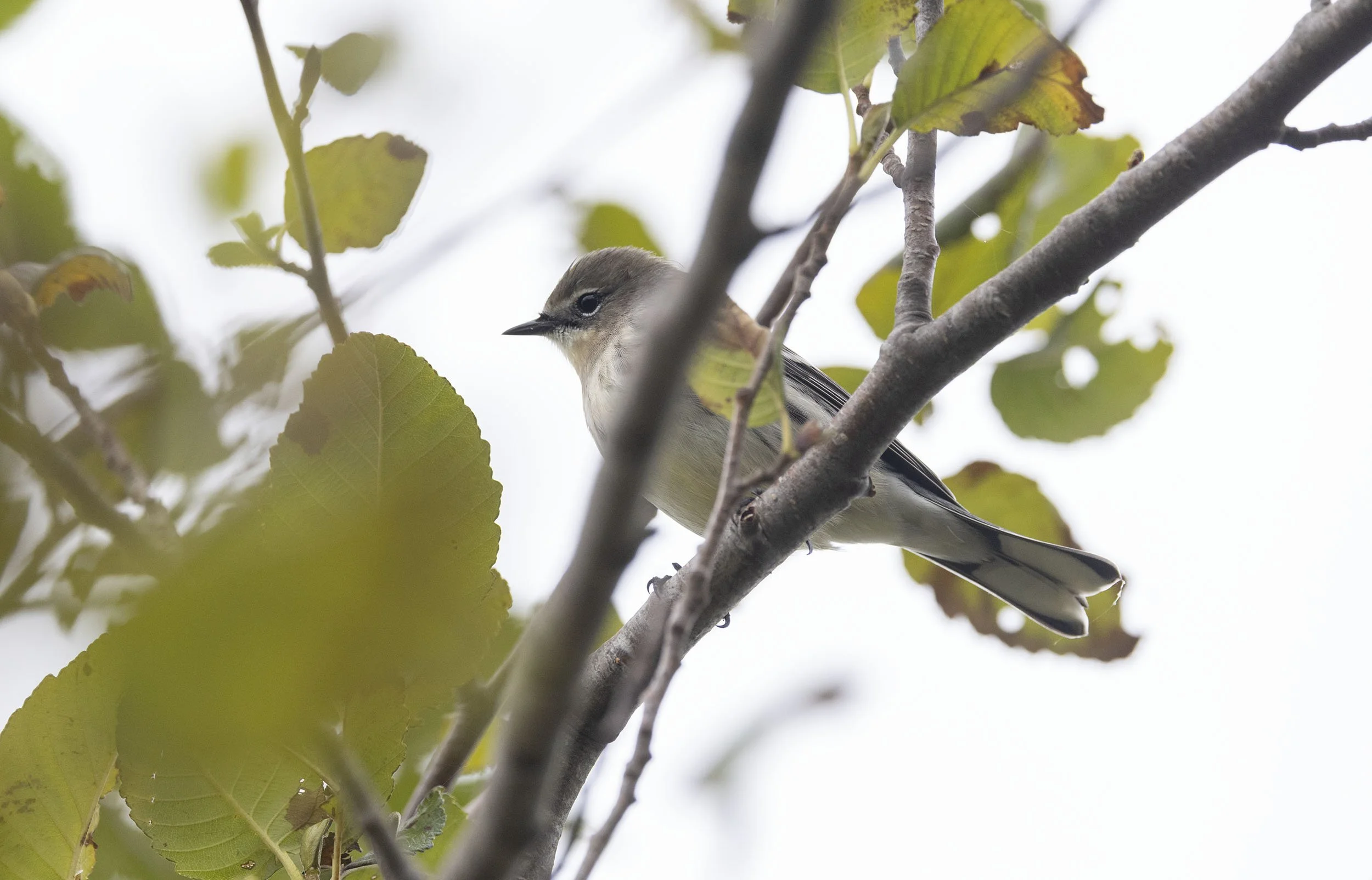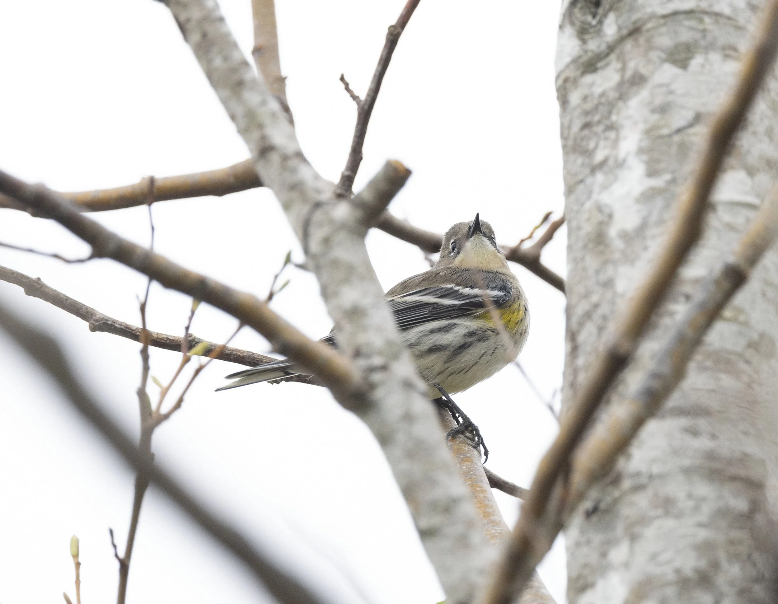 First winter Audubon’s Warbler proving difficult to photograph up in the tree tops