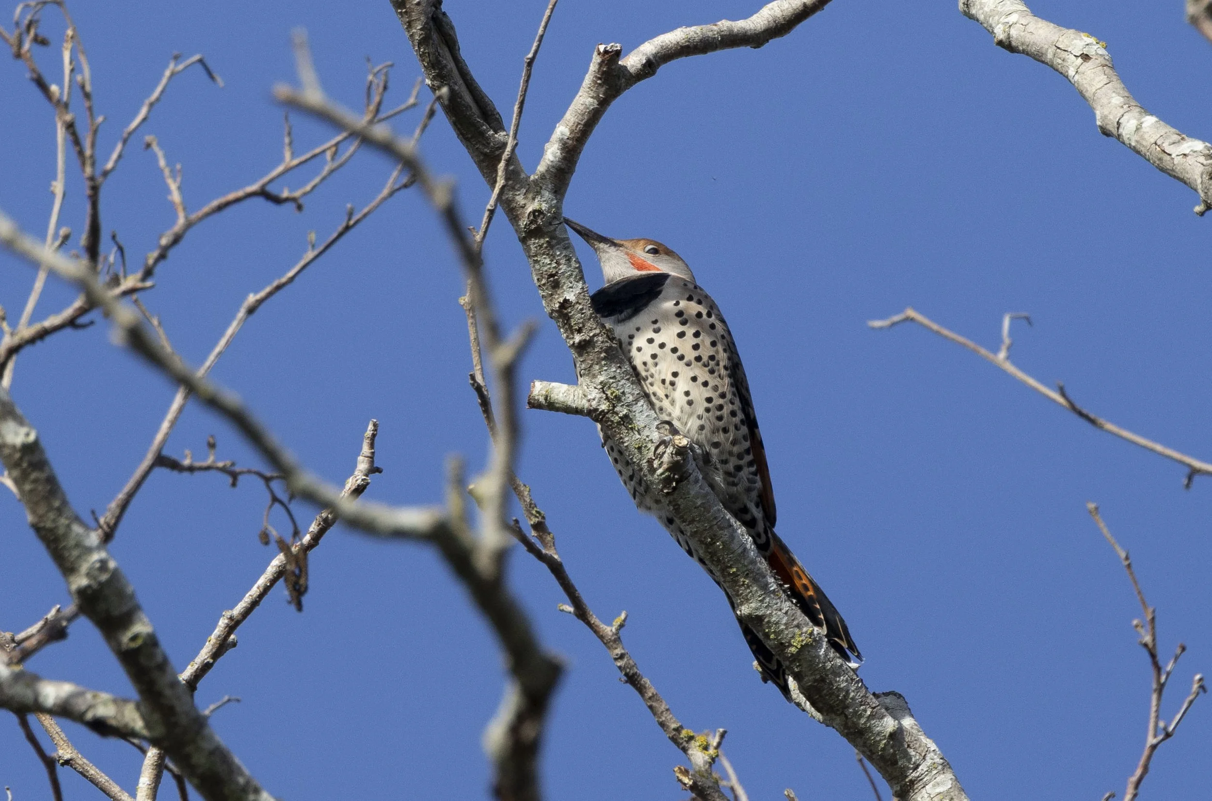 A few Red-shafted Flickers were along the dyke - this one landed in a washed up tree where I was photographing sparrows