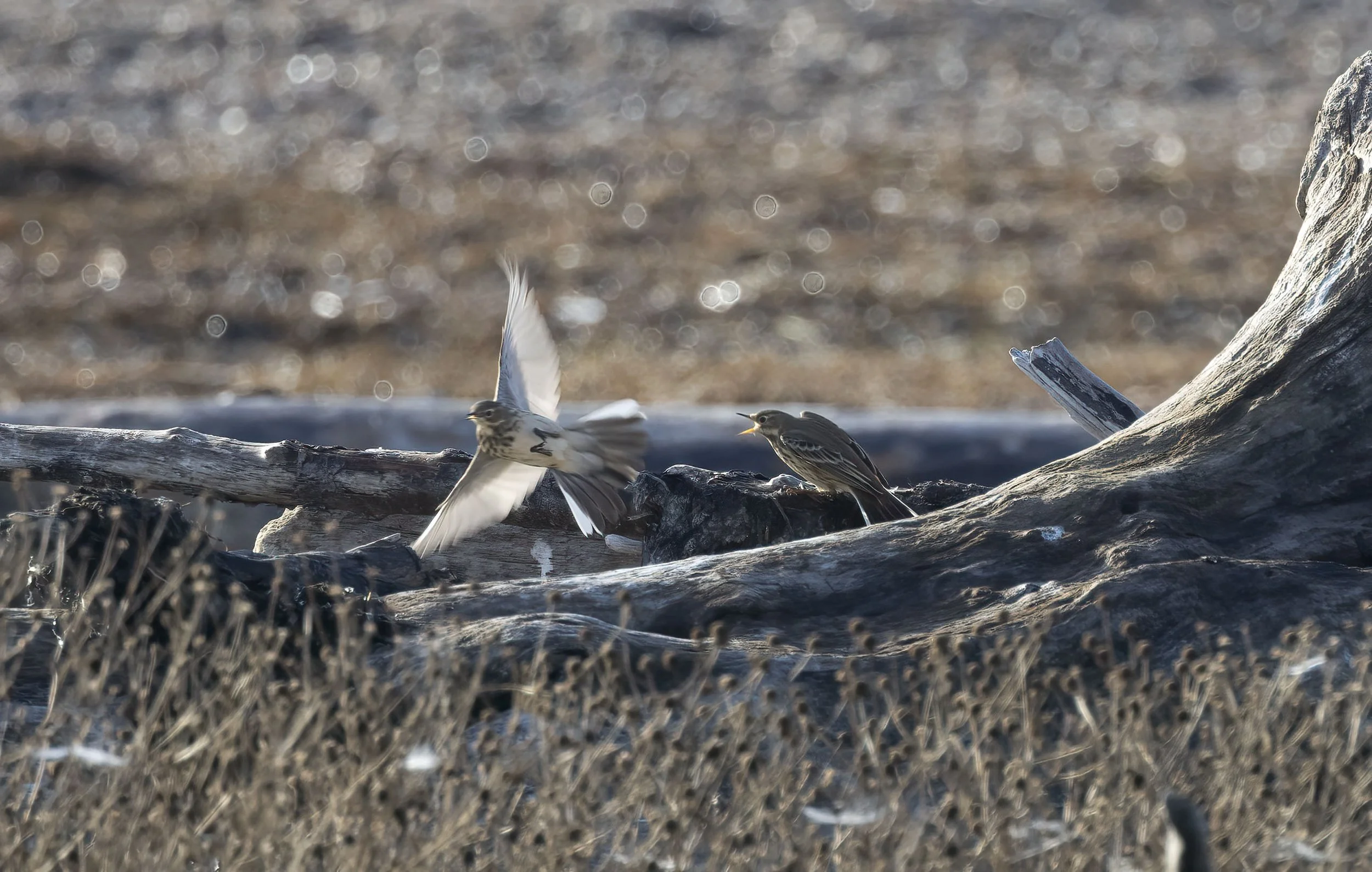 A fracas between two Buff-bellied Pipits on the marsh - sadly the pipits were far too far away for decent images and as we only had a couple of hours there was no chance of getting anything better