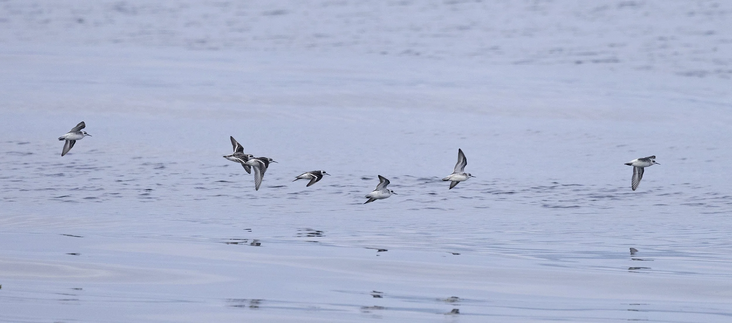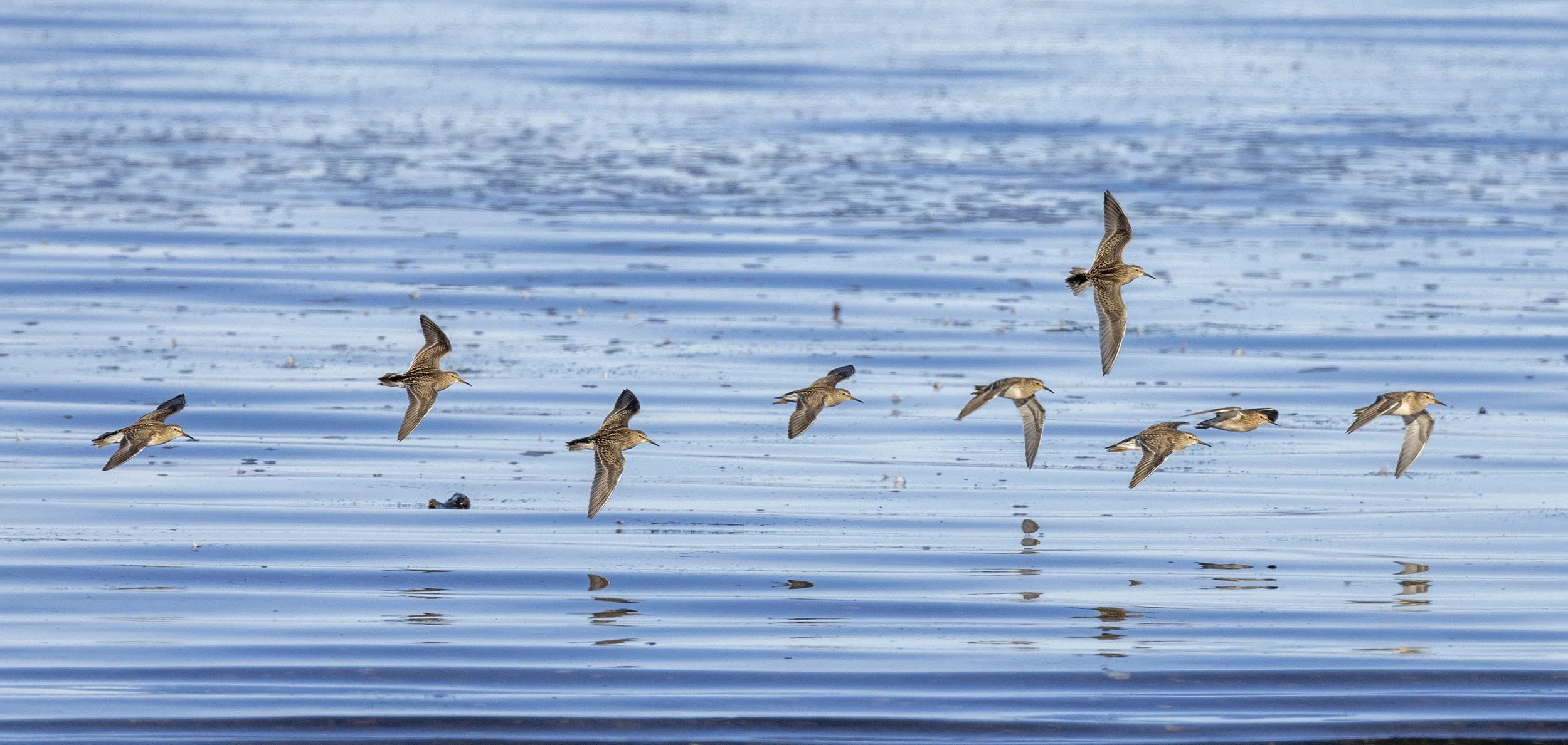 Accustomed to seeing lone Pectoral Sandpipers in the UK we think of them as solitary migrants but flocks are frequent on the coastal strip where this flock of 11 appeared and landed in front of us on a quite busy beach
