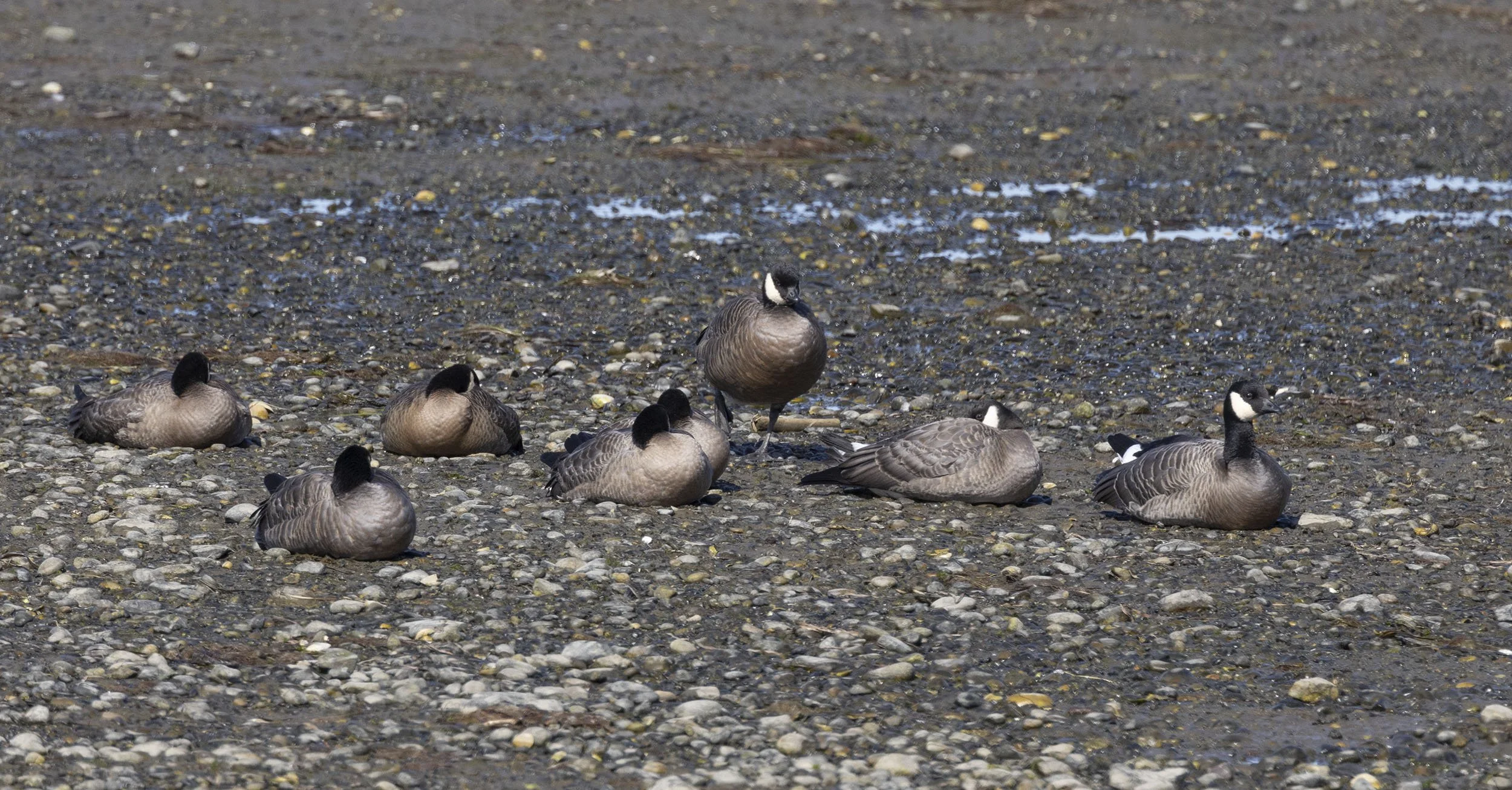 Presumably Aleutian Cackling Geese with large local birds - unfortunately they slept most fo the time we were watching them until they flew off when we were elsewhere