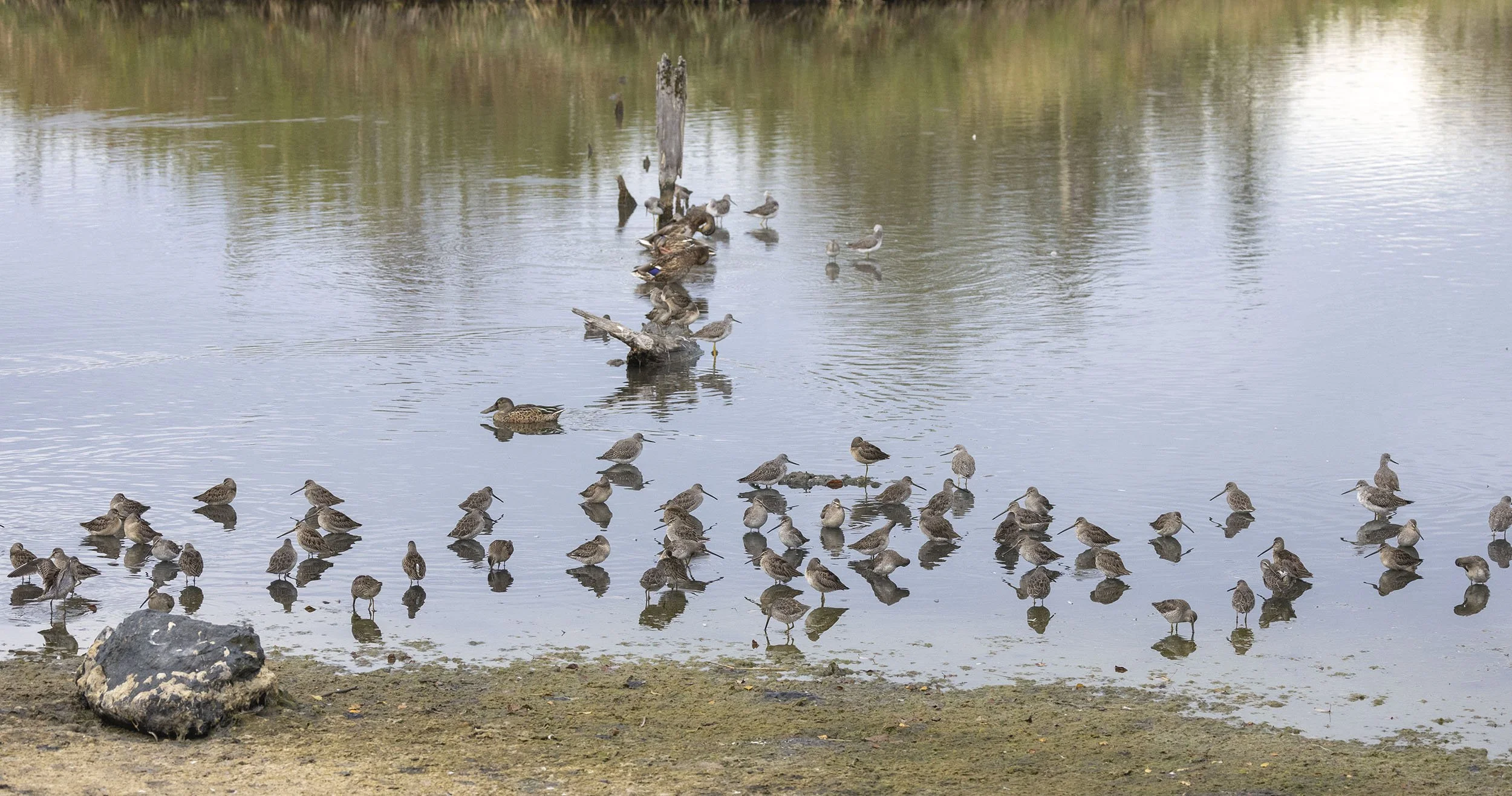 mostly Long-billed Dowitchers on one of the lagoons at George Reifel