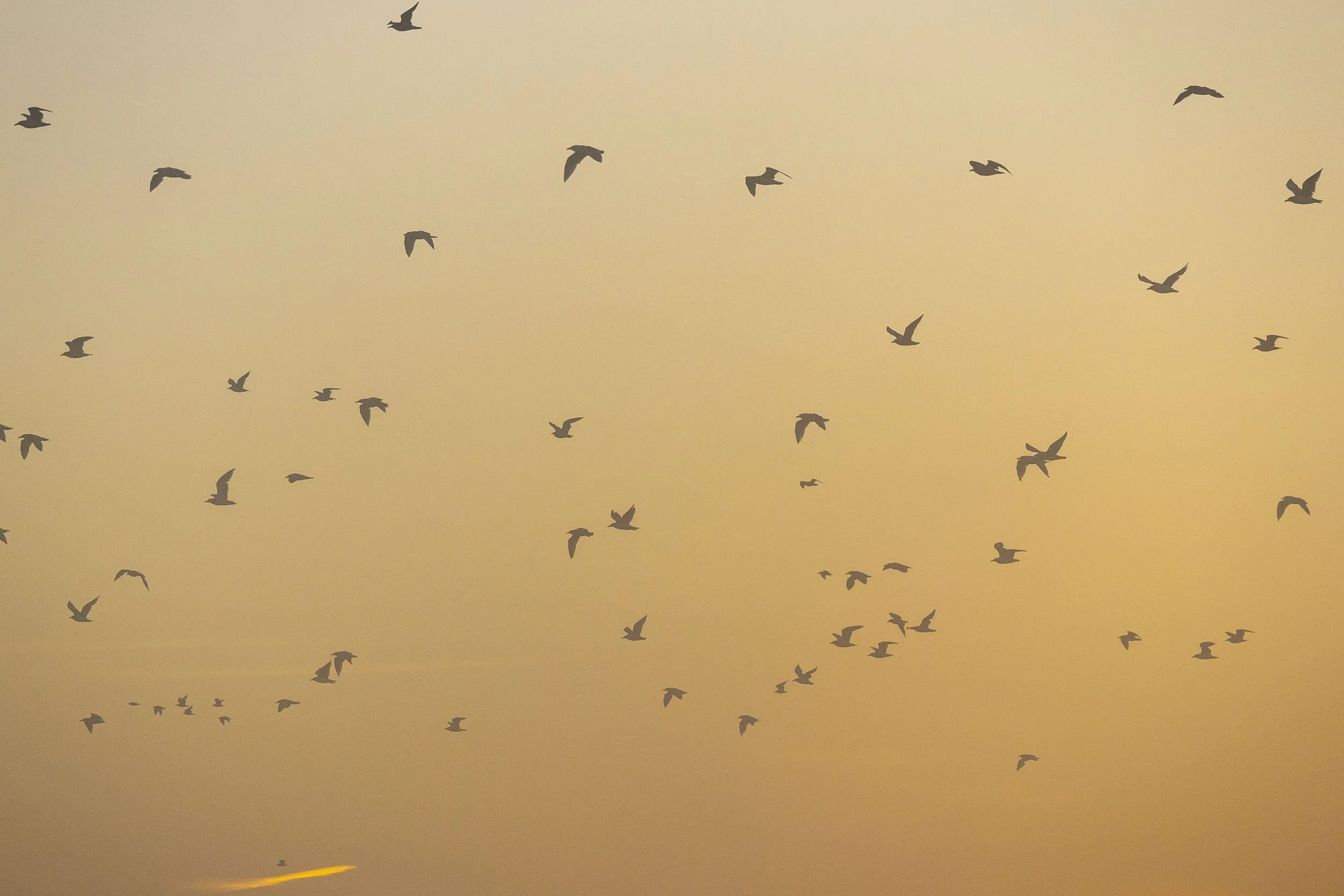 Thousands of gulls roost on Boundary Bay and move inland to feed at first light