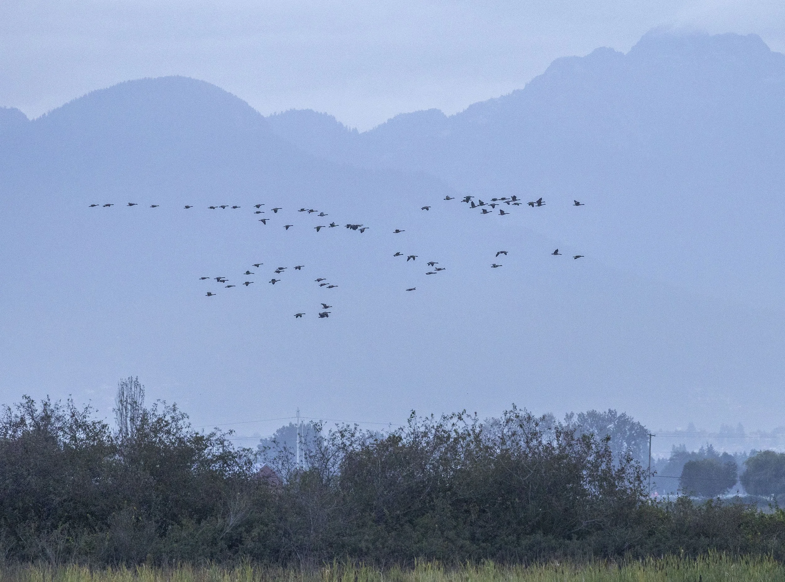 Flock of Cackling Geese over Westham Island early light 22nd